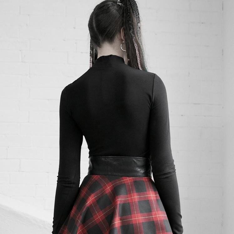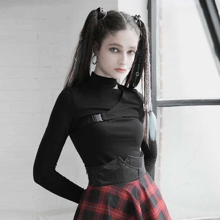 Verpassen Sie nicht die Gelegenheit, dieses Damen-T-Shirt mit gespleißtem Gothic-Ausschnitt und langen Ärmeln in Ihrem Kleiderschrank zu sichern. Perfekt für jede Saison und ein Muss für Ihren individuellen Gothic-Stil!