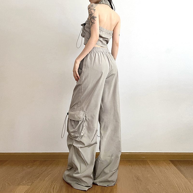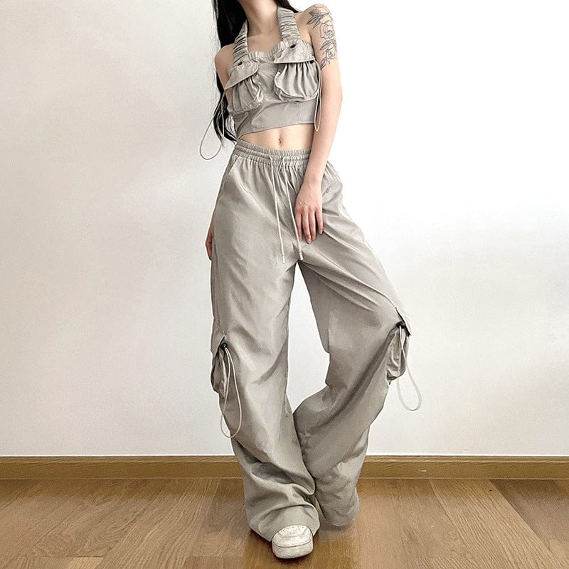 Sichern Sie sich das Damen-Tanktop im Grunge-Stil mit großen Taschen, Kordelzug und Neckholder und bringen Sie Ihre Individualität zum Ausdruck. Perfekt für Sommerspaziergänge, lässige Treffen oder kreative Outfits. Erleben Sie den ultimativen Grunge-Look!