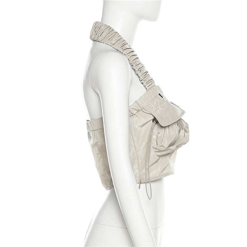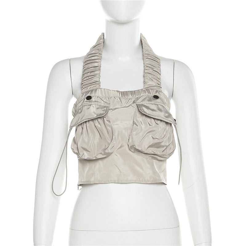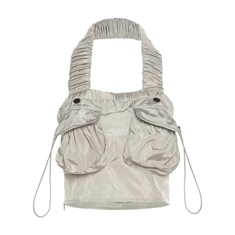 Damen-Tanktop im Grunge-Stil mit großen Taschen, Kordelzug und Neckholder