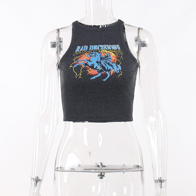 Verpassen Sie nicht die Gelegenheit, Ihren Look mit diesem Damen-Tanktop mit Grunge-Devil-Print zu vervollständigen. Bestellen Sie noch heute und bringen Sie den Grunge-Chic in Ihren Alltag!