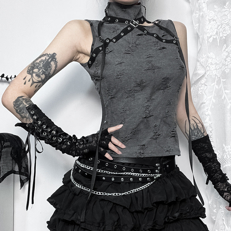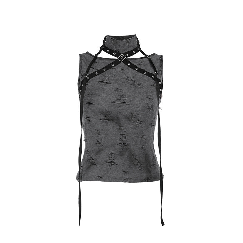Damen-Tanktop mit zerrissenen Ösen im Grunge-Stil