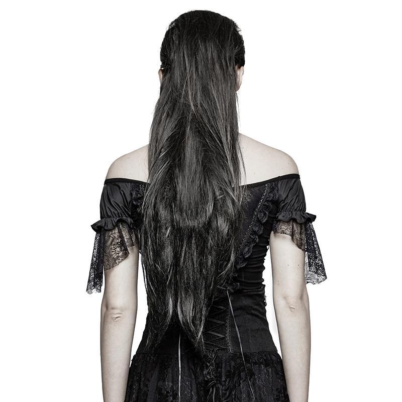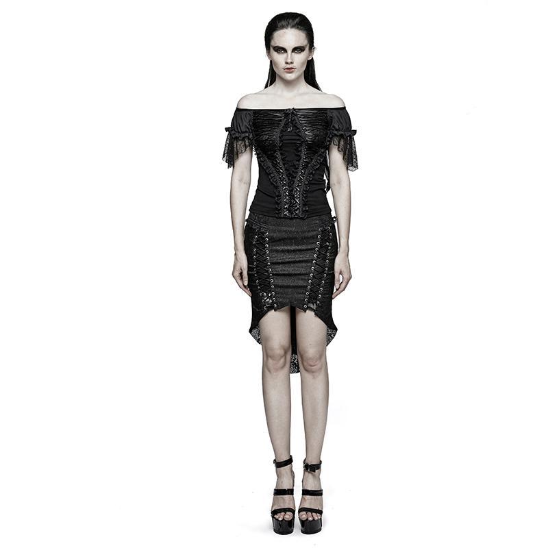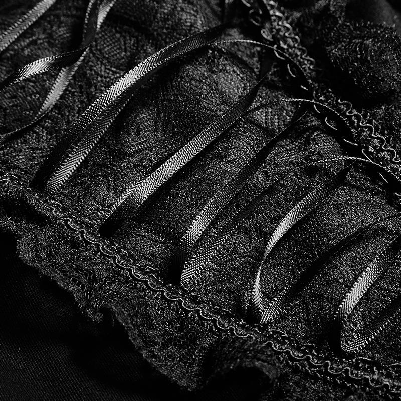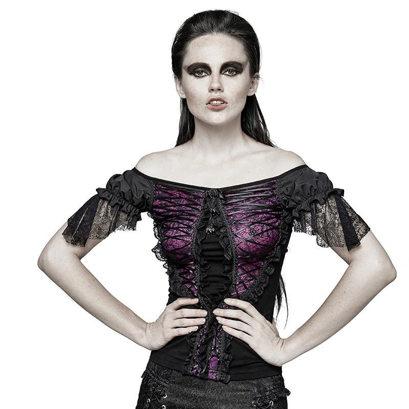 Kombinieren Sie dieses Damen-Tunika-Oberteile im Gothic-Stil mit U-Boot-Ausschnitt und Spitze mit einer ausgefallenen Gothic-Bluse oder einem Gothic-Oberteil für Damen für einen unvergesslichen Auftritt. Ergänzen Sie Ihren Look mit edgy Accessoires aus der Kategorie Gothic Romance Outfit.