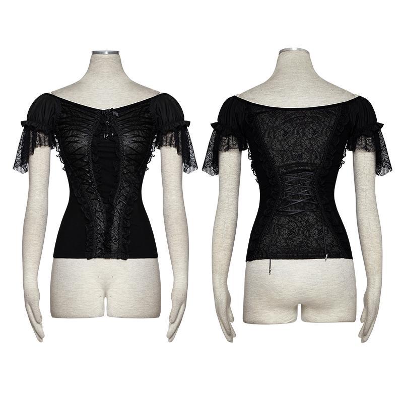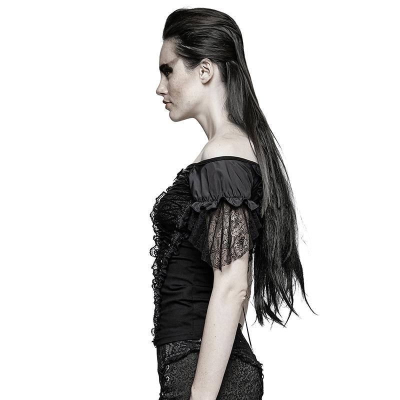 Damen-Tunika-Oberteile im Gothic-Stil mit U-Boot-Ausschnitt und Spitze