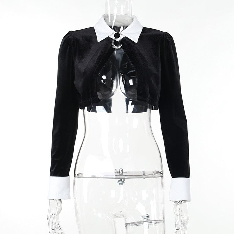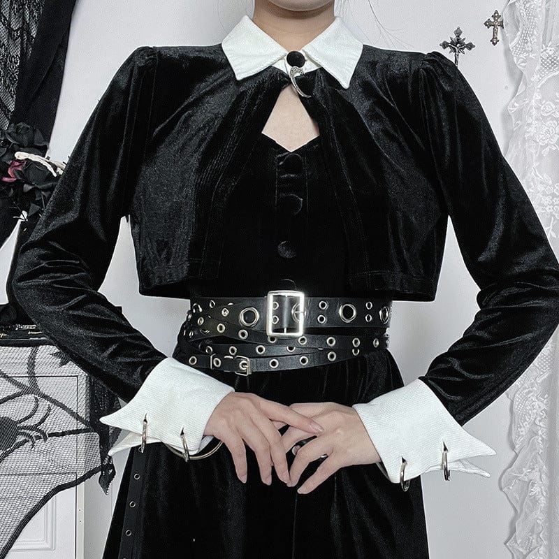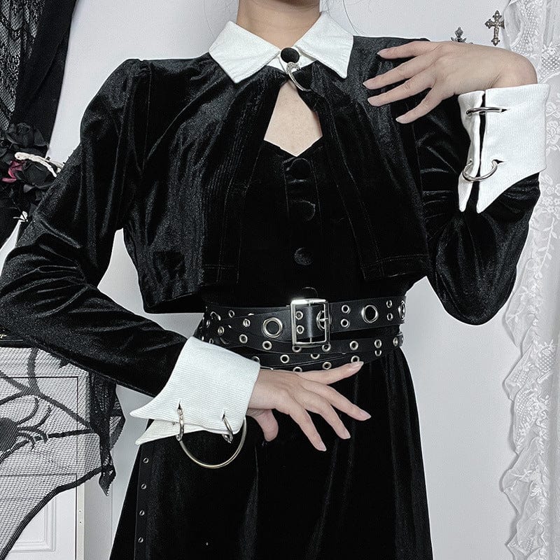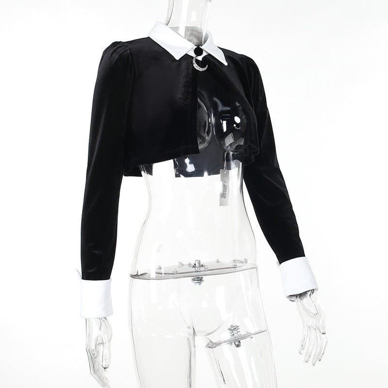 - Eleganter Gothic-Stil: Verleihen Sie Ihrem Look einen edlen Touch durch den kontrastierenden Umlegekragen und die feine Samtoptik.
