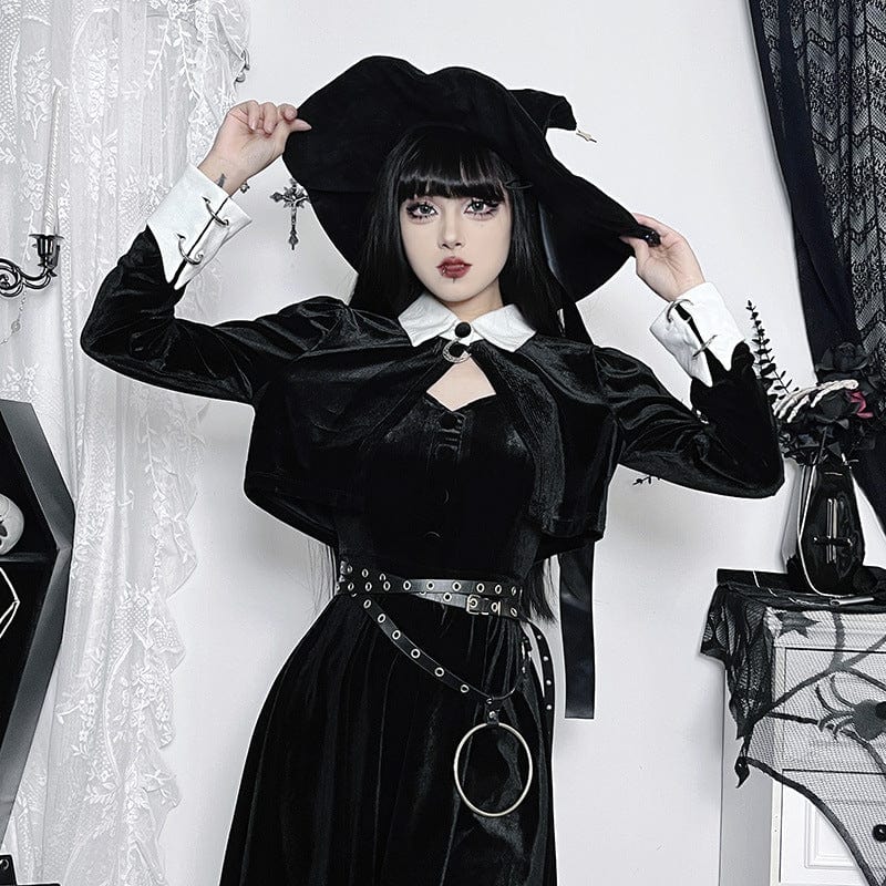 Sichern Sie sich diesen einzigartigen Damen-Umhang aus Samt im Gothic-Stil mit Umlegekragen in Kontrastfarbe und verleihen Sie Ihrem Outfit einen unverwechselbaren Charakter. Perfekt geeignet für die Herbst- und Wintersaison sowie für Gothic-Festivals und besondere Anlässe!