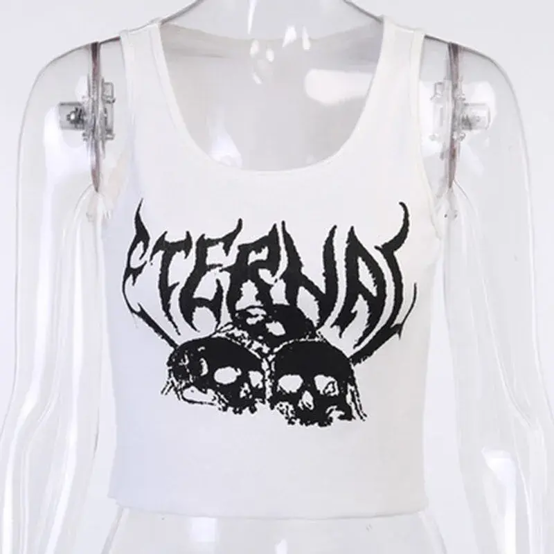 Entdecke das Gothic-Punkrock-Crop-Top mit Totenkopf-Motiv im stilvollen Design, perfekt für Festivals. Leicht, bequem und vielseitig kombinierbar!