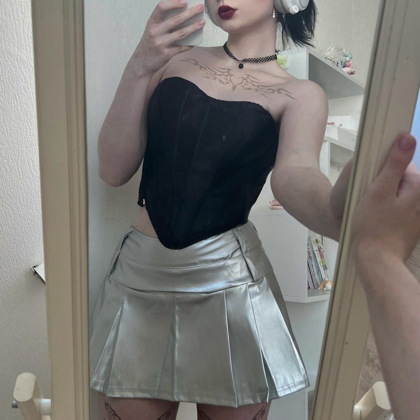 Kombinieren Sie diesen Glitzernden Punk-Faltenrock für Damen mit einem Gothic Style Top oder einer Gothic Unterteil Kollektion für einen authentischen Gothic-Look. Ergänzen Sie den Stil mit unseren damenhaften Gothic-Kleidung, um den perfekten edgy Look zu erreichen.