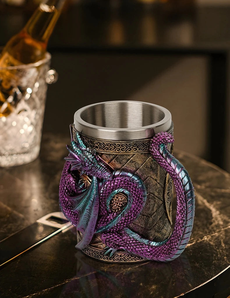 - Unverwechselbares Design: Der 3D-Drachengriff und das gotische Muster machen diesen Kelch zu einem echten Hingucker und Sammlerstück.