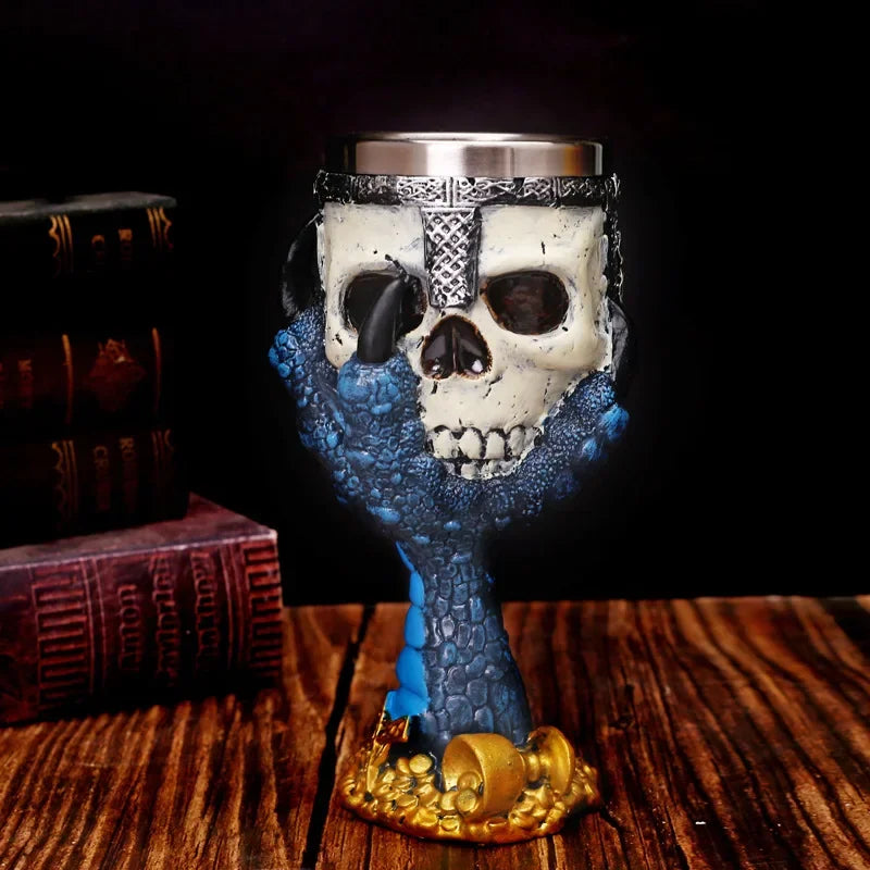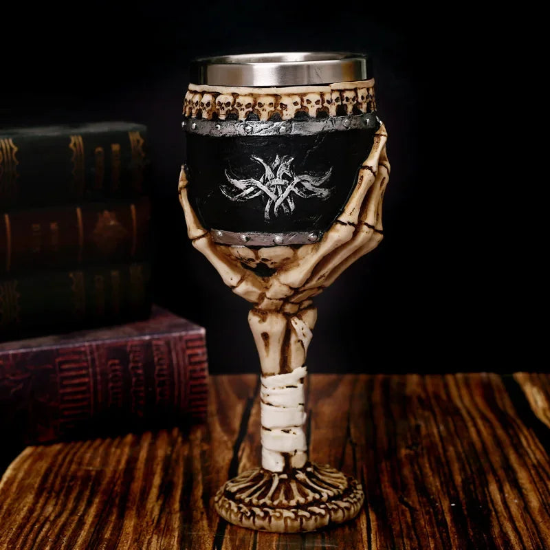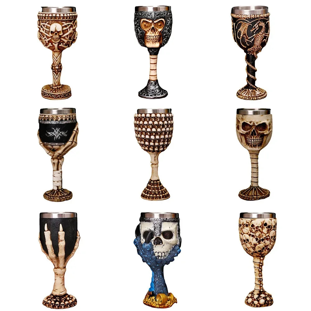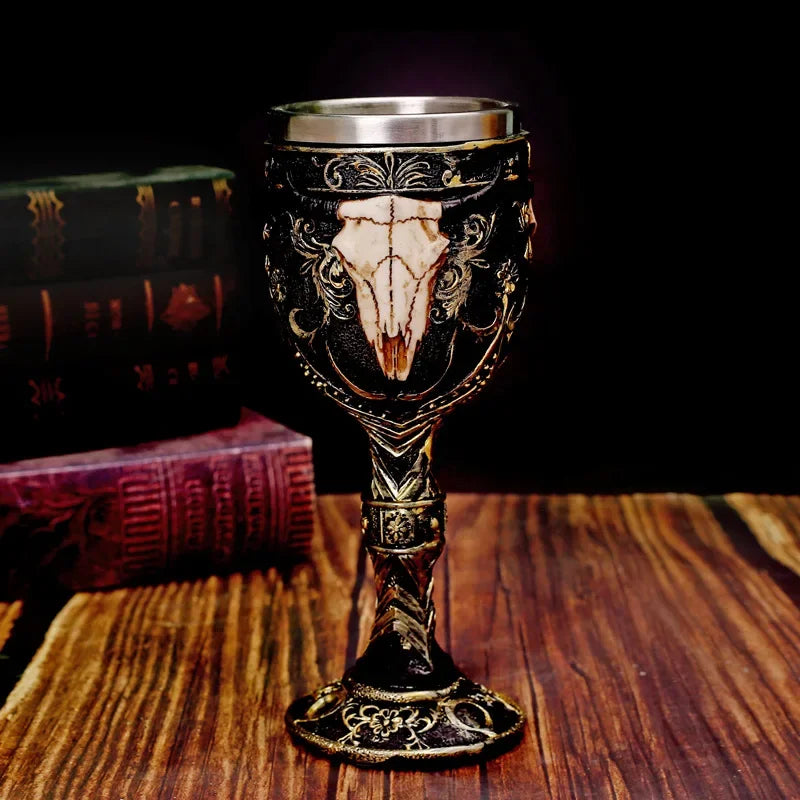 Gothic 3D Totenkopf Kelch aus Harz & Edelstahl, Becher