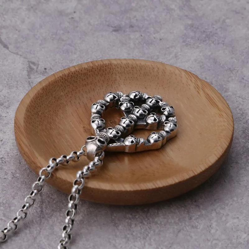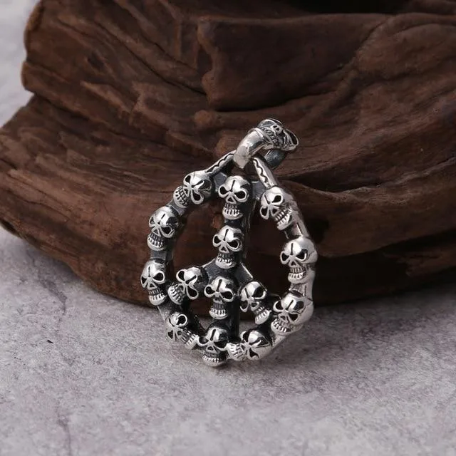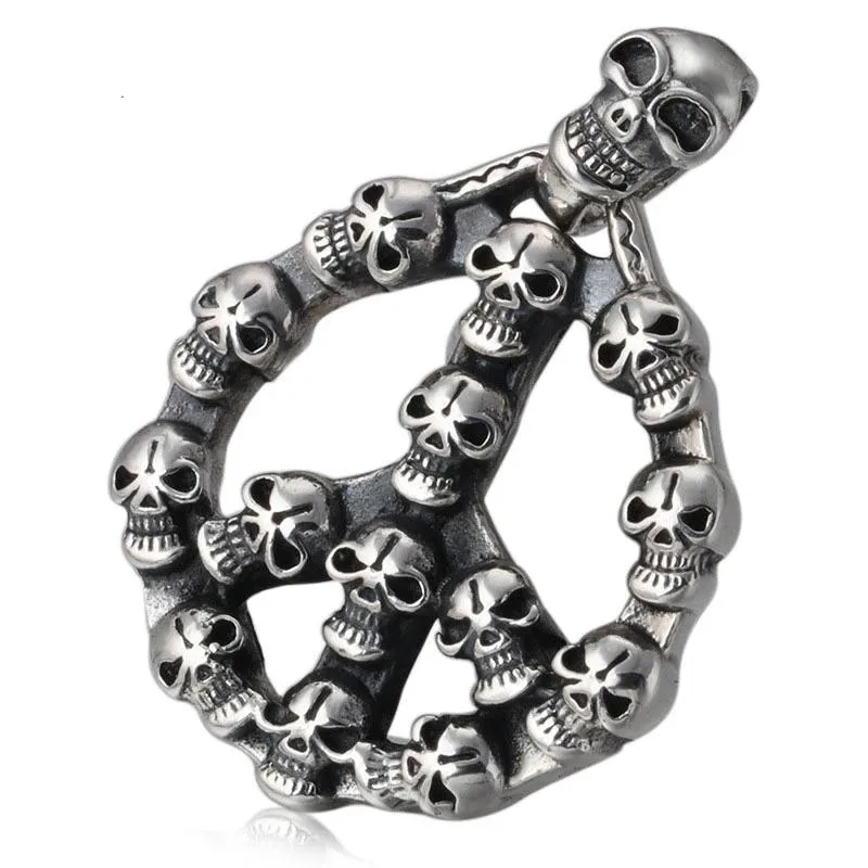 • Einzigartiges Design: Totenköpfe, die das Symbol des Friedens formen, machen diesen Anhänger zu einem unvergleichlichen Statement-Piece.