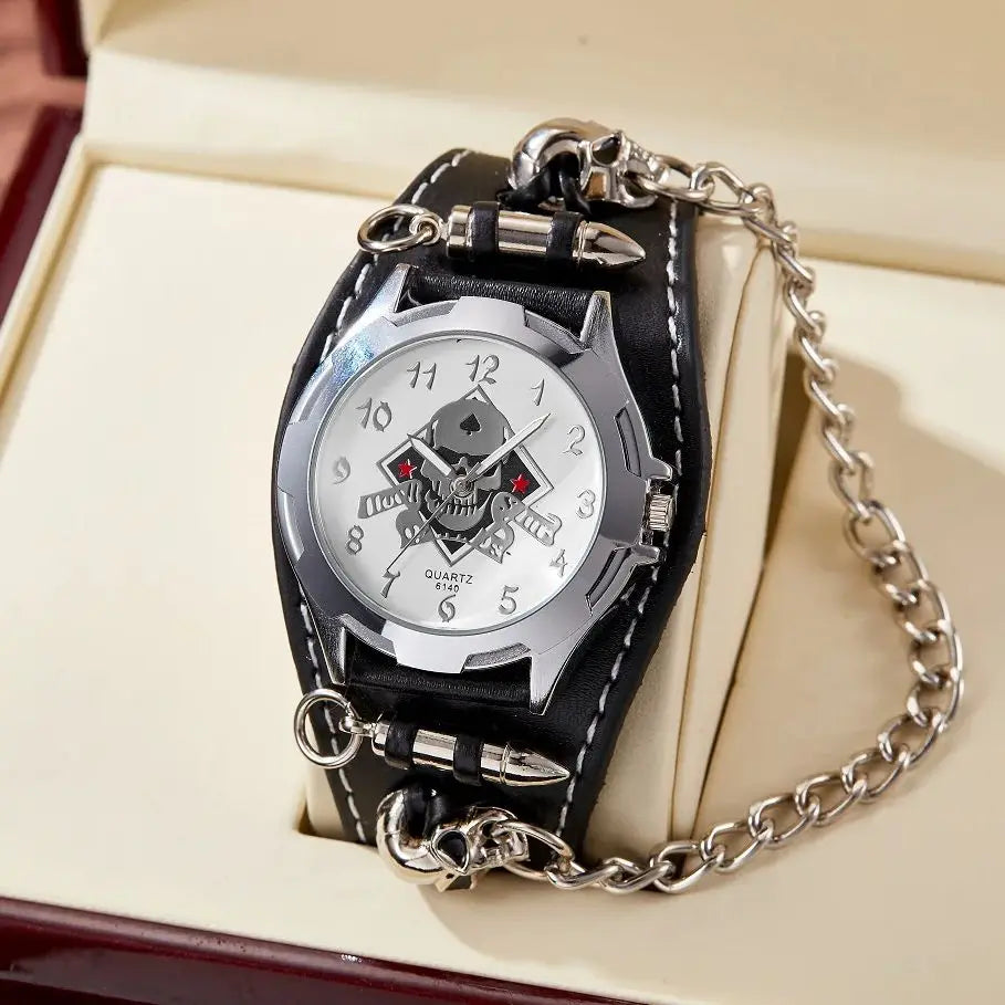 Gothic Anime Skull Uhr mit Lederarmband – Punk Style