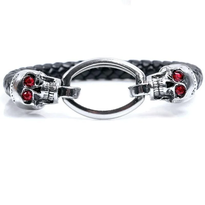 - Exklusives Design: Die Zwillings-Totenköpfe mit kräftig leuchtenden roten Augen machen dieses Armband zu einem atemberaubenden Accessoire für Gothic-Enthusiasten.