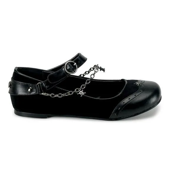 Entdecken Sie unsere Gothic Ballerina Kette, das perfekte Accessoire für echte Gothic-Liebhaber. Diese flachen Schuhe, gefertigt aus hochwertigem schwarzem veganem Leder, bieten nicht nur Stil, sondern auch Komfort. Die einzigartige Totenkopf-Anhängerkette und der durchgehende Innenreißverschluss machen sie zu einem absoluten Highlight. Egal ob im Alltag oder bei besonderen Gothic-Events, diese Ballerina-Schuhe verleihen jedem Outfit eine mystische Note.