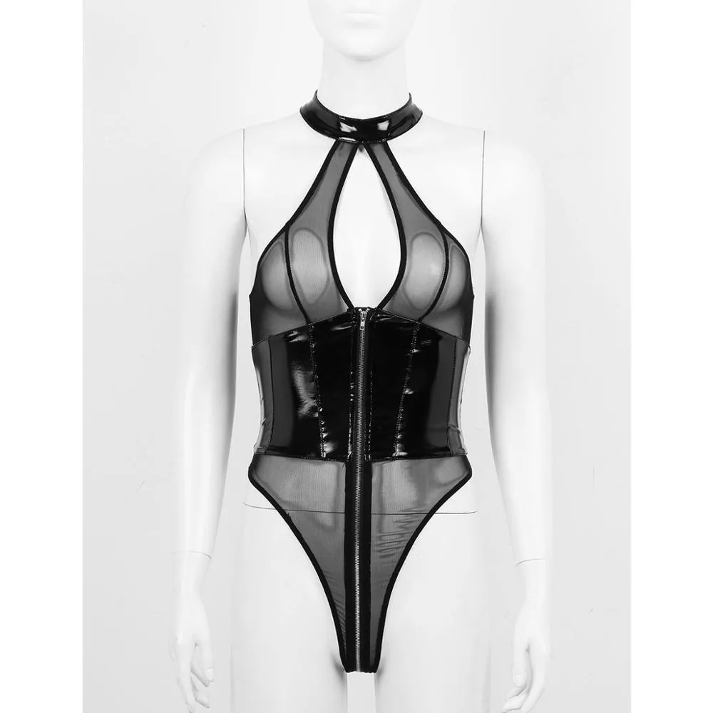 • Hauptvorteil 2: Hochwertiges Patchwork aus Lackleder an der Taille kombiniert mit Netzober- und Unterteilen für einen markanten Look.