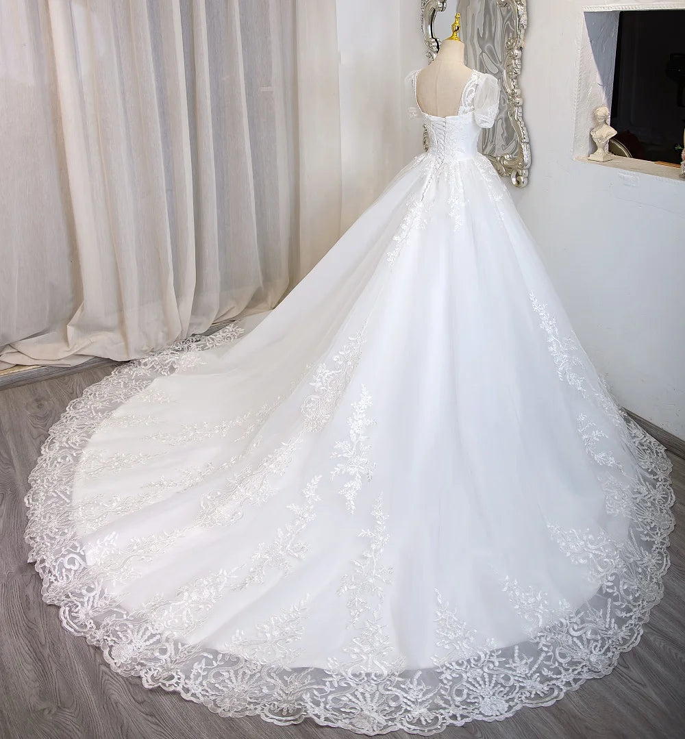 - Schnitt: Ballkleid mit natürlicher Taille und Chapel-Schleppe