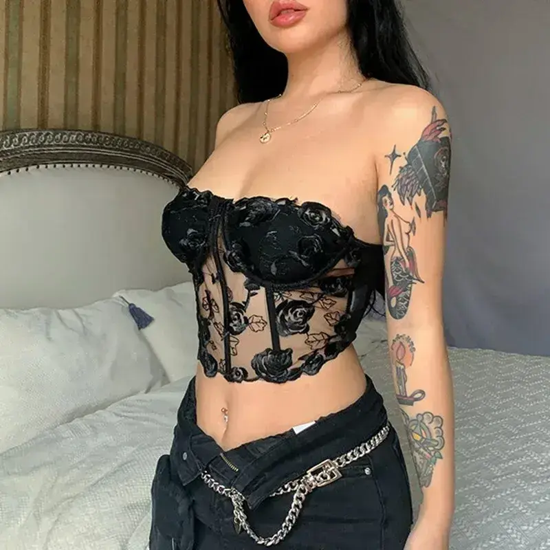 Verpassen Sie nicht die Chance, Ihr Outfit mit diesem Gothic Bustier aus schwarzer Spitze zu vervollständigen. Der perfekte Look für laue Sommernächte oder aufregende Partys erwartet Sie – sichern Sie sich diesen atemberaubenden Stil jetzt!