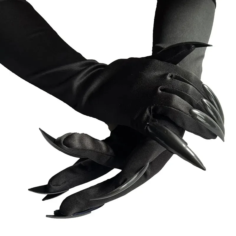 Erkunden Sie die Dunkelheit mit unseren Gothic Cosplay Handschuhen, dem ultimativen Accessoire für Liebhaber des Gothic-Stils. Diese schwarzen Handschuhe mit langen, spitz zulaufenden Kunststoffkrallen verleihen Ihrem Look eine mystische und eindringliche Ästhetik. Ideal für Halloween, Kostümpartys oder Fantasy-Rollenspiele – sie sind ein wahres Must-have für jeden Gothic-Look.