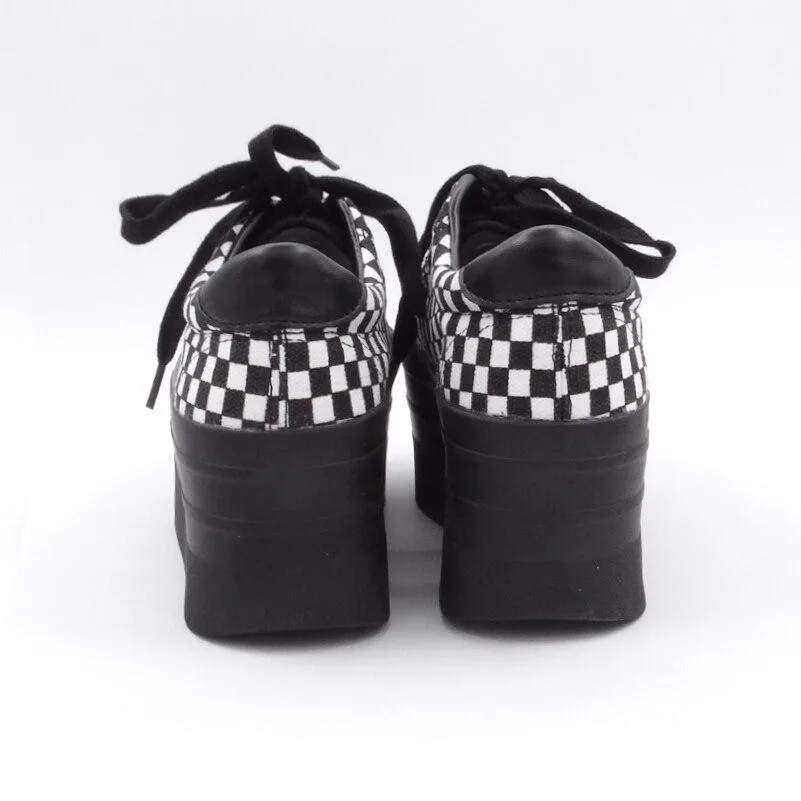Entdecke die stylischen Gothic Creepers mit Schachbrettmuster – perfekte Schuhe für einen auffälligen Look und individuellen Stil!