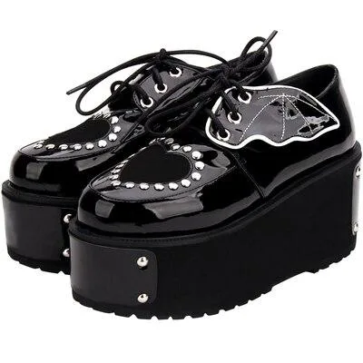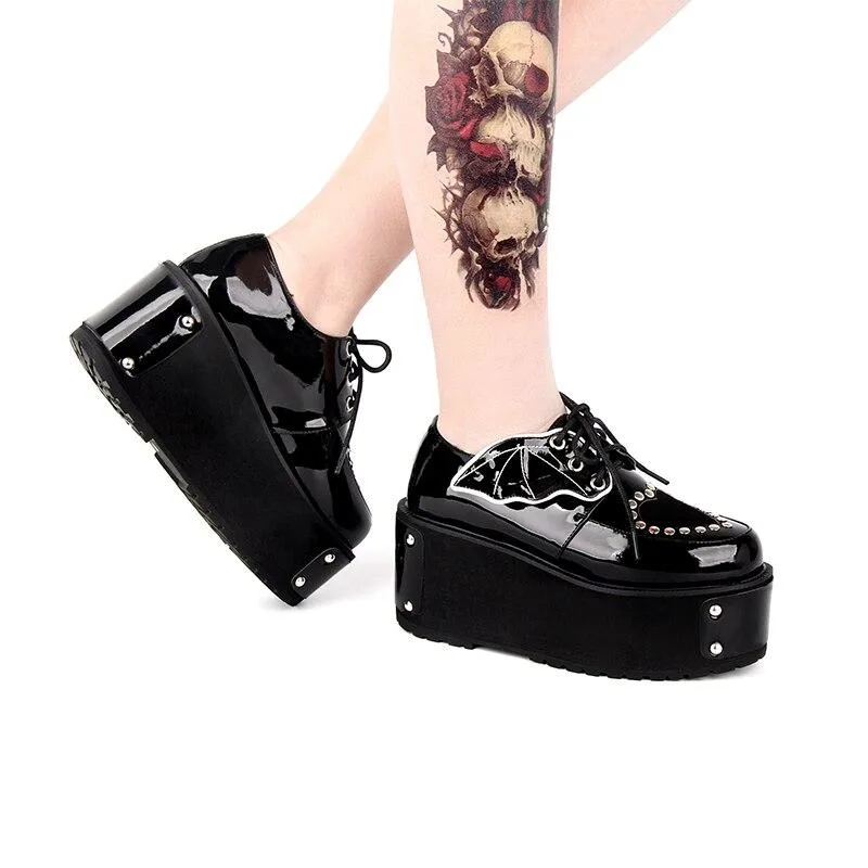 Verleihen Sie Ihrem Stil eine düstere Eleganz mit unseren Gothic Creepers Vampir. Diese einzigartigen Schuhe kombinieren klassische Gothic-Elemente mit modernem Komfort. Mit ihrem vampirischen Look und der auffälligen gestreiften Gummisohle sind diese Creepers in der Gothic-Mode ein absolutes Highlight. Perfekt für Liebhaber der dunklen Ästhetik und ein Muss für Ihre Sammlung von Gothic-Schuhen.