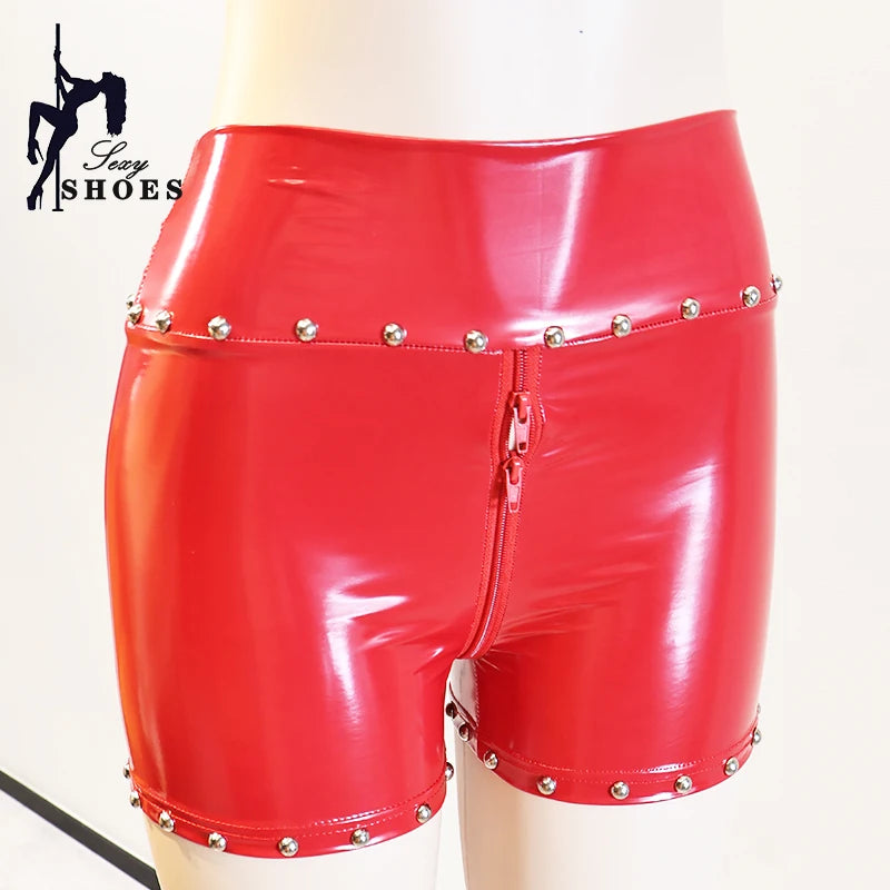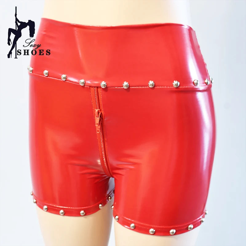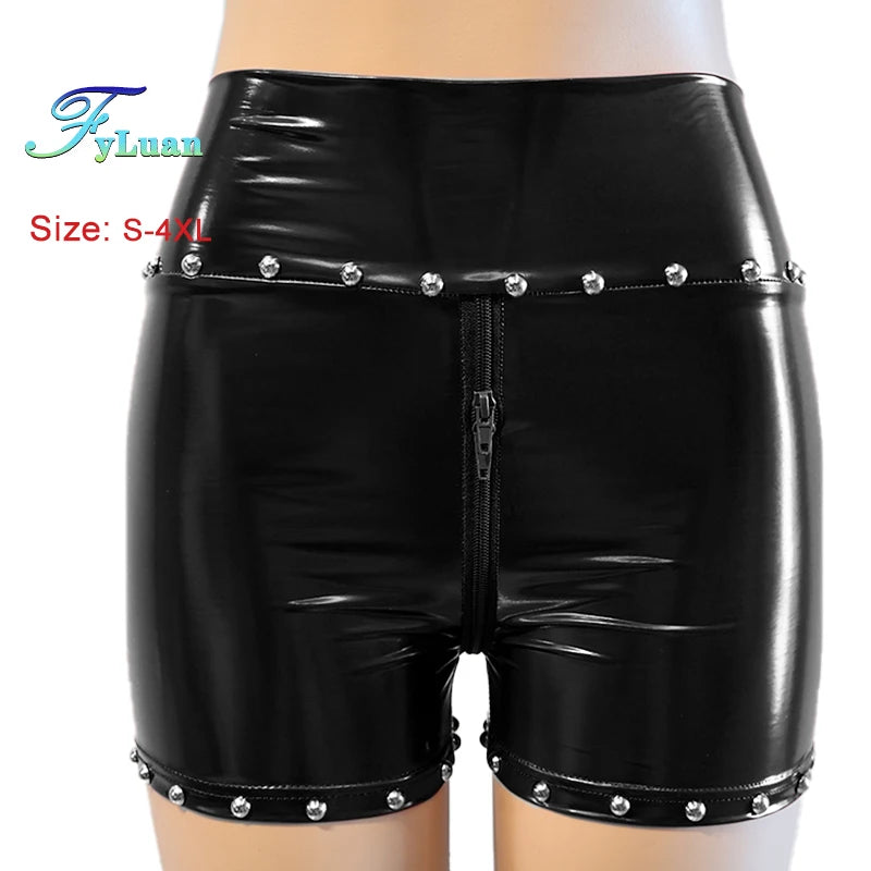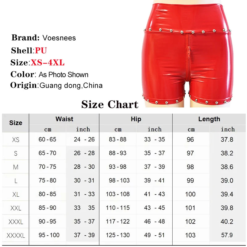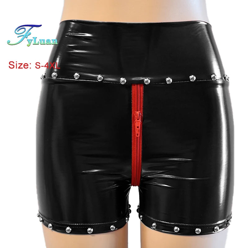 Entdecken Sie unsere Gothic Damen Hotpants mit Nieten und Doppelreißverschluss – das Must-have für alle Liebhaberinnen des extravaganten Gothic Styles mit einer Prise Punk und Sex-Appeal. Diese Hotpants aus glänzendem Lederimitat verbinden gekonnt provokantes Design mit einer figurbetonten Passform. Perfekt geeignet für Festivals, Clubnächte oder Streetwear-Looks, setzen diese Shorts ein starkes modisches Statement.