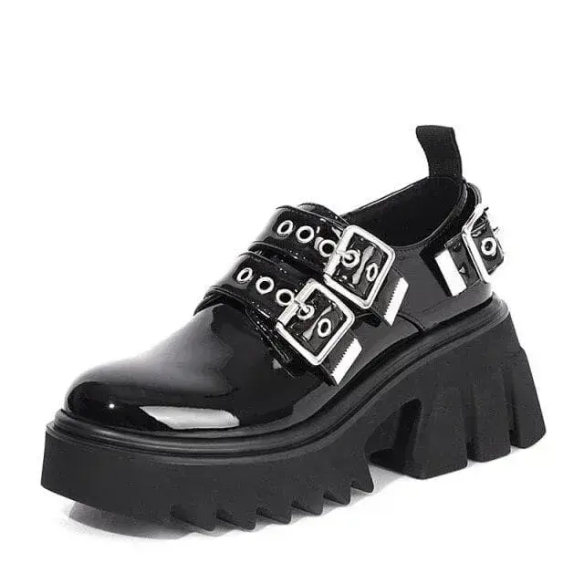 Entdecken Sie unsere Gothic Damen Punk Schuhe, das perfekte Schuhwerk für Frauen, die den Gothic-Punk-Stil lieben. Diese eleganten Schuhe, die in schwarzem Leder oder glänzendem Lackleder erhältlich sind, vereinen Komfort und ästhetischen Reiz. Ob für den alltäglichen Gebrauch oder besondere Anlässe, diese Punk-Schuhe sind ein echter Hingucker und ideal, um Ihre rebellische Seite zur Geltung zu bringen.