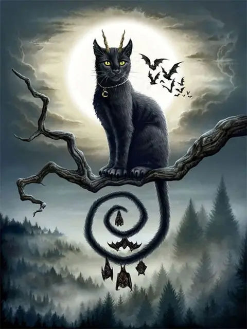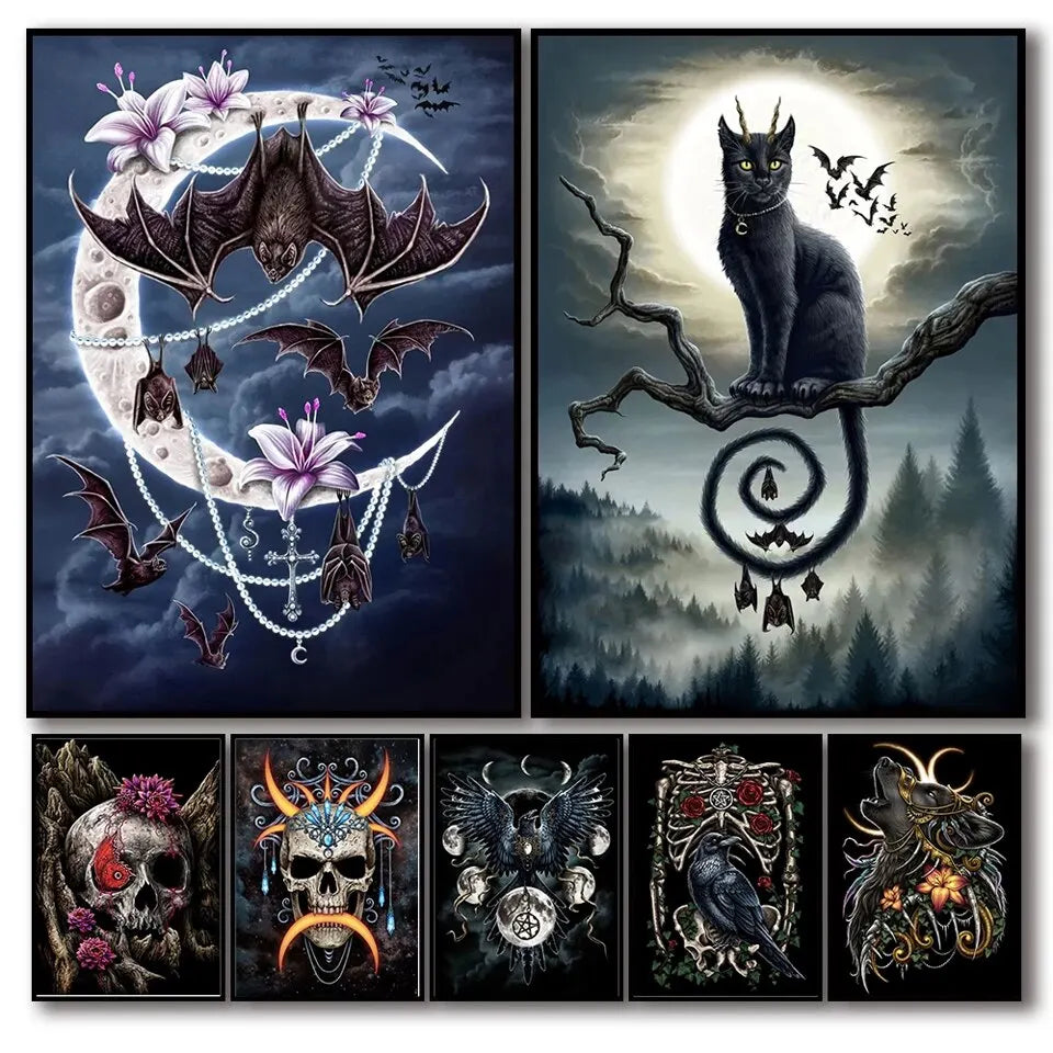 Entdecke unser Gothic Art Bat Cat Diamond Painting – ein mystisches Kunstwerk mit Totenkopf, Engel und Stickerei für dein gothic Zuhause!