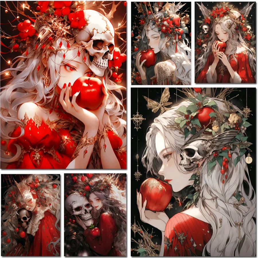 Erleben Sie Gothic-Kunst zum Selbermachen – sichern Sie sich noch heute Ihr Gothic DIY Diamond Painting mit Totenkopf und Mädchen, 5D und lassen Sie Ihre Wände im stilvollen Schimmer der Dunkelheit erstrahlen!