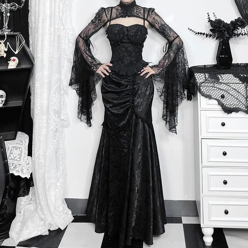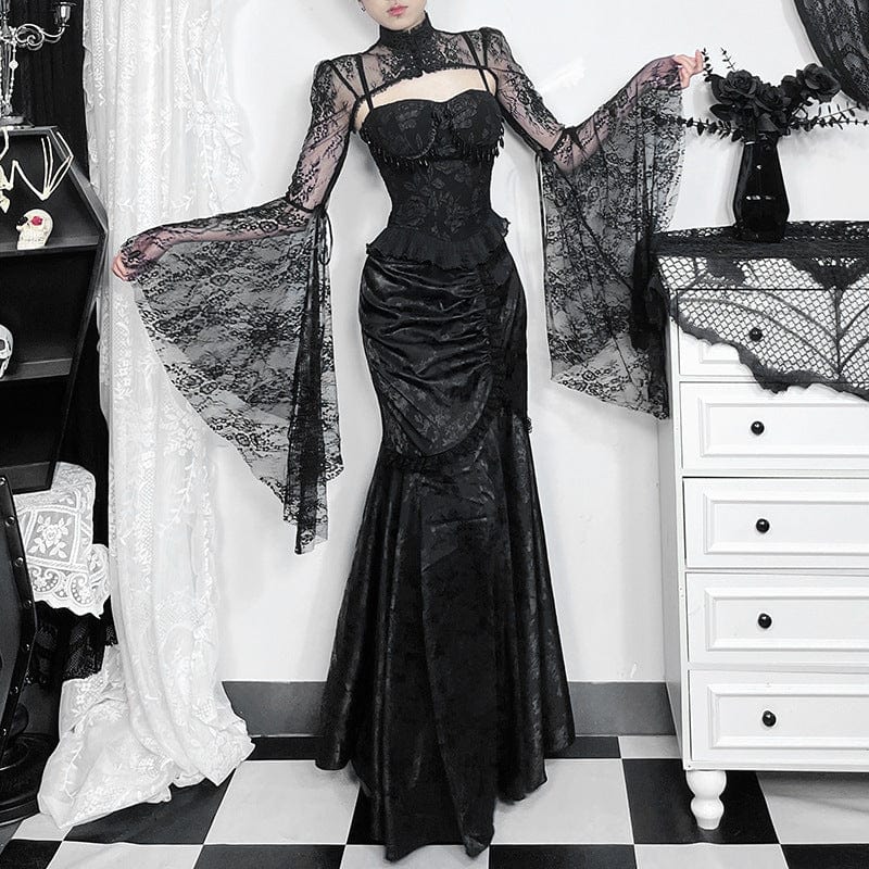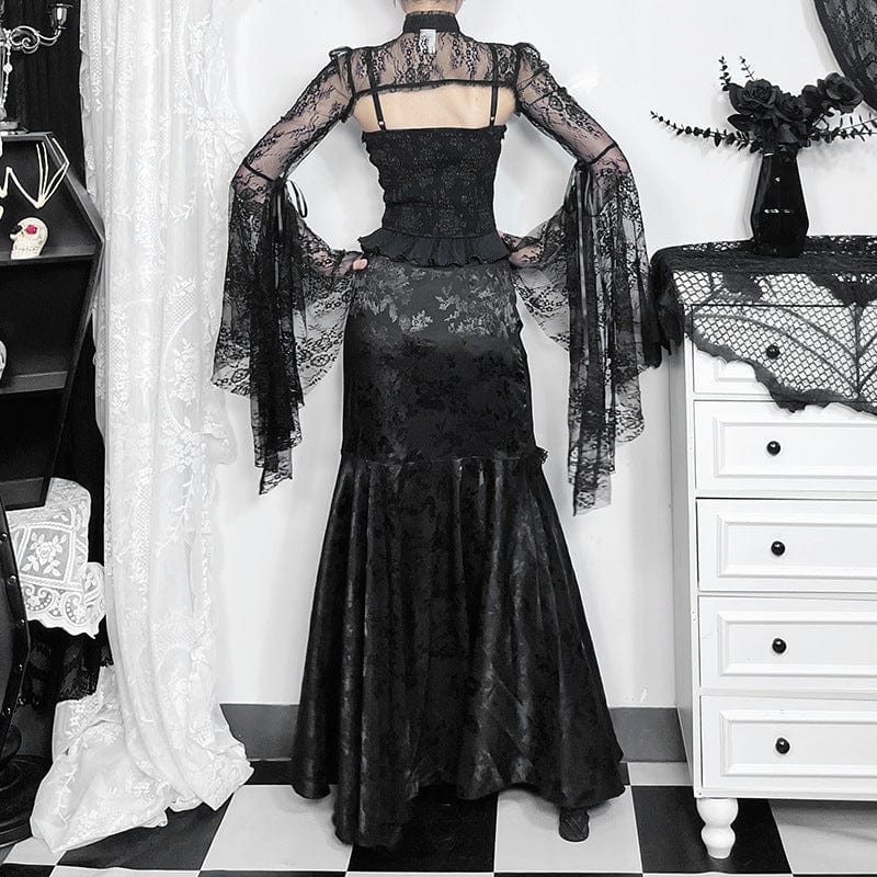 Sichern Sie sich den Gothic-Fischschwanzrock mit Spitzenspleiß und Rüschen für Damen und verleihen Sie Ihrem Outfit eine unvergleichliche Note. Seien Sie bereit, stilvolle Statements zu setzen – ideal für echte Gothic-Enthusiasten!