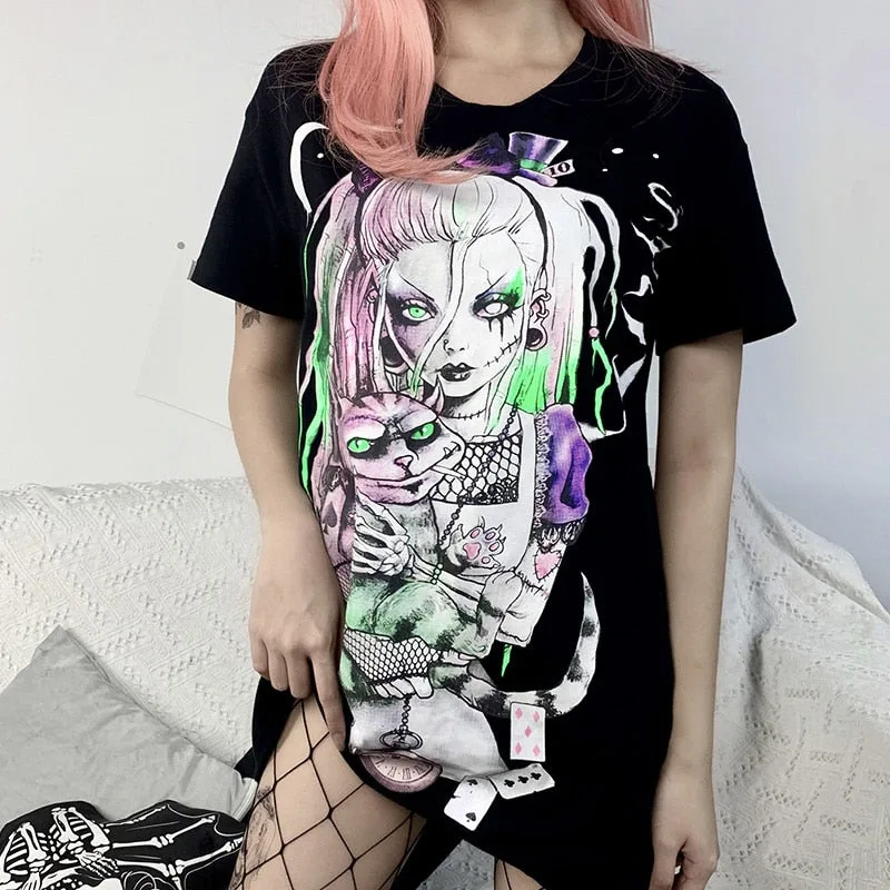 Entdecken Sie unser Gothic Geek T Shirt, das perfekte Kleidungsstück für alle, die den gothischen, anarchischen und geekigen Style lieben. Hergestellt aus einer hochwertigen Mischung aus Polyester und Baumwolle, bietet dieses Produkt sowohl Komfort als auch Stil. Mit seinem oversized Schnitt und dem einzigartigen psychedelischen Kawaii-Druck wird es sicherlich zum Mittelpunkt Ihrer Outfits. Ob für den Alltag oder den nächsten Ausflug in die kühleren Jahreszeiten – dieses T-Shirt ist vielseitig kombinierbar und ein echter Hingucker.
