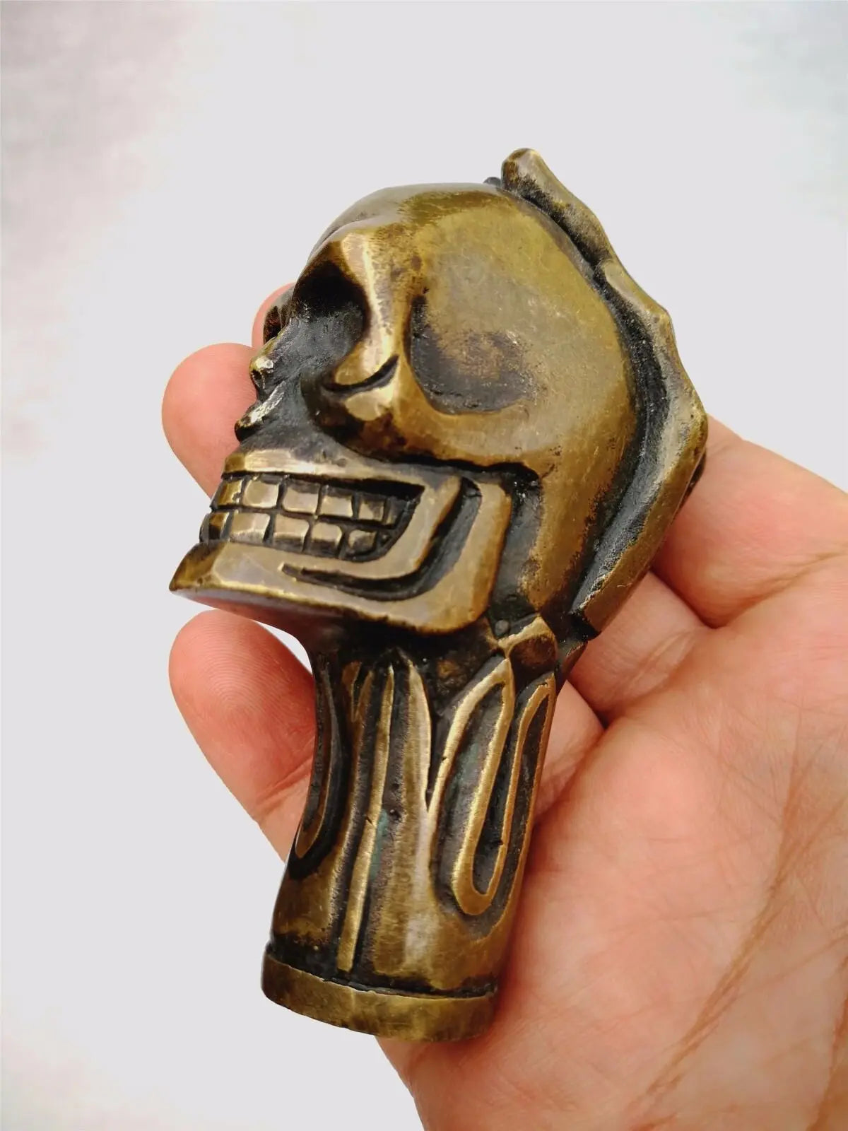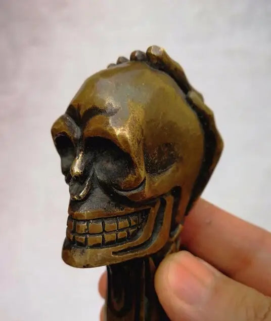 Entdecken Sie unseren Gothic Gehstockgriff aus Bronze mit Totenschädel-Design – ein einzigartiges Accessoire für Ihre düstere Ästhetik. Mit seiner fein gearbeiteten Totenschädelform bringt dieser Griff die perfekte Balance zwischen Eleganz und Morbidität in Ihren Look. Aus hochwertiger Bronze gefertigt, ist dieser handgeschnitzte Gehstockgriff ein Muss für Liebhaber des Gothic-Punk-Stils und setzt ein auffälliges Statement für jeden Spaziergang oder als Sammlerstück.