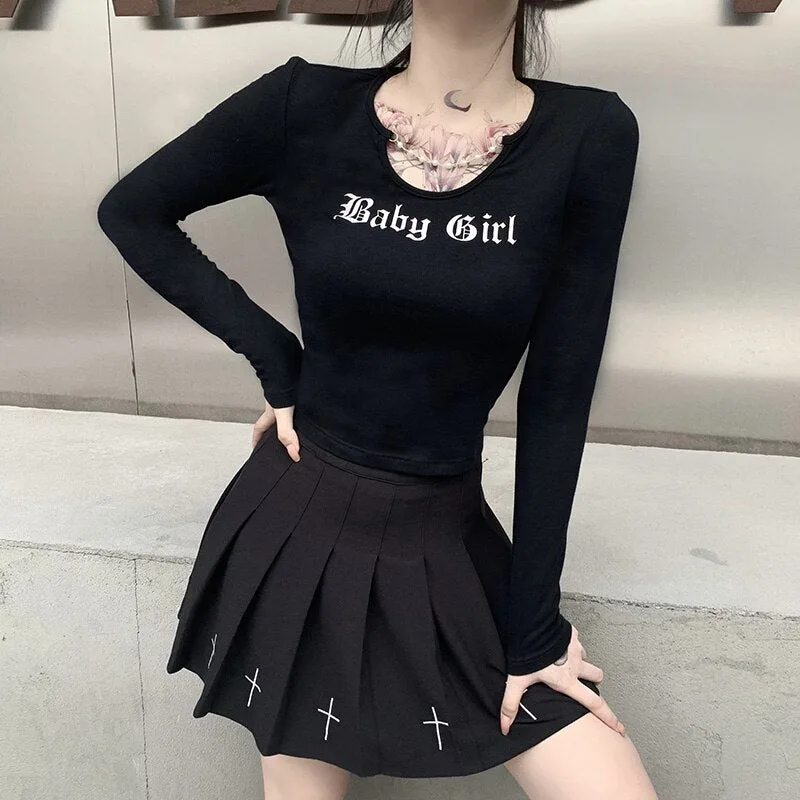 Entdecken Sie unser Gothic Girl T Shirt, das perfekte Kleidungsstück für alle Gothic-Fans, die einen femininen und zugleich rebellischen Punk-Rock-Look lieben. Mit seinem schlichten Design, einem auffälligen Baby-Girl-Print und einer exklusiven Perlenkette wird dieses T-Shirt schnell zu einem unverzichtbaren Teil Ihrer Garderobe. Ob für den Alltag oder besondere Anlässe, dieses Gothic Shirt lässt sich vielseitig kombinieren und fügt sich nahtlos in Ihren alternativen Stil ein.