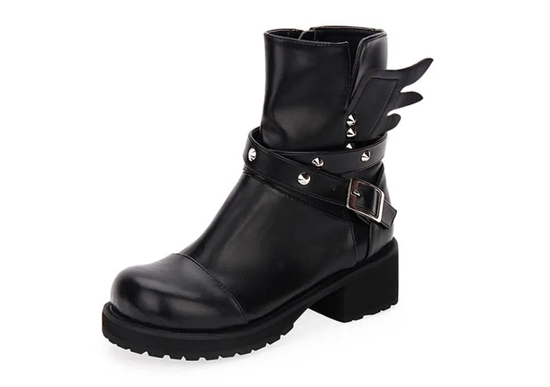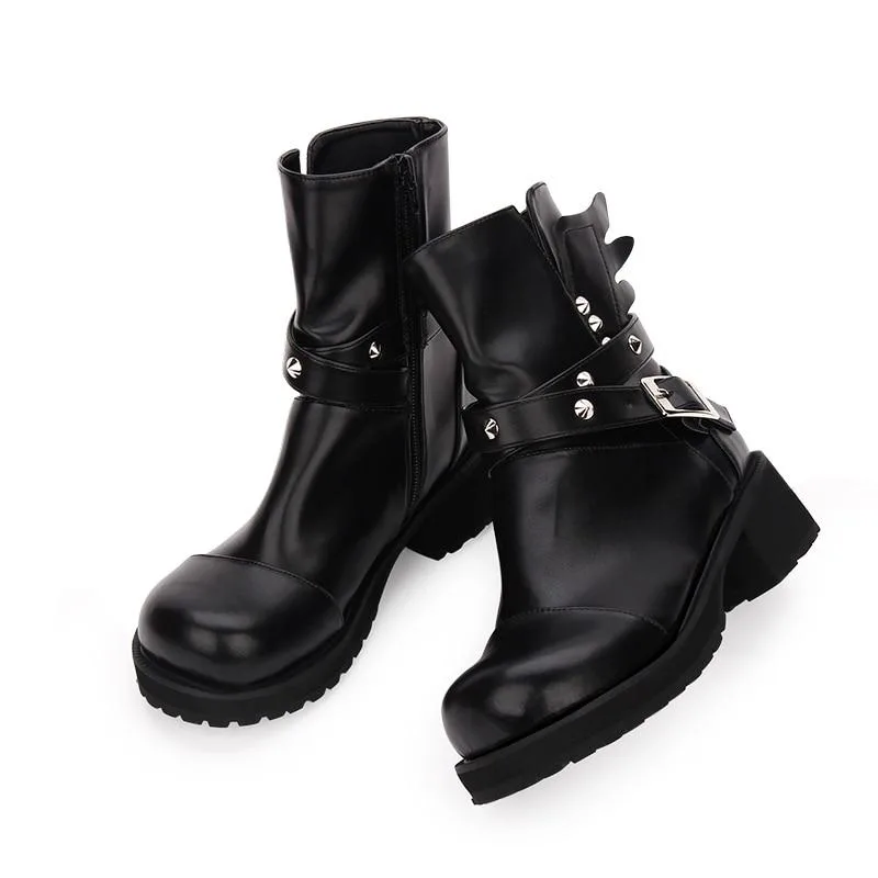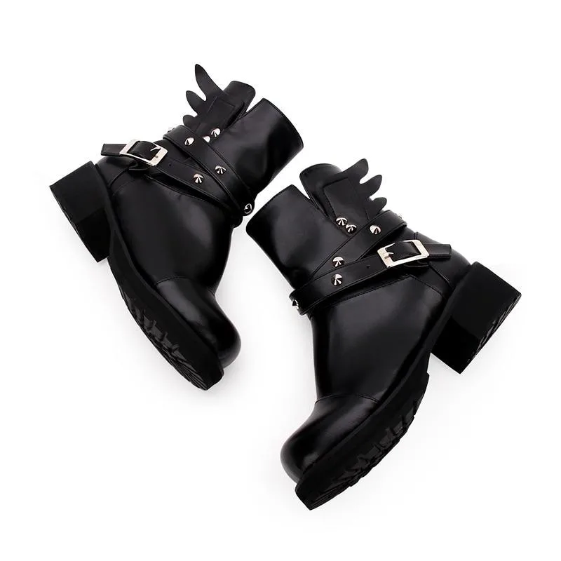 Entdecken Sie die einzigartigen Gothic Gurtbandstiefel mit Flügeln, die Ihr Gothic-Outfit auf ein neues Niveau heben. Diese stilvollen Stiefel vereinen Komfort, Qualität und ein unverwechselbares Design, das jedem Gothic-Look eine besondere Note verleiht. Perfekt für alle, die Stil und Originalität schätzen.