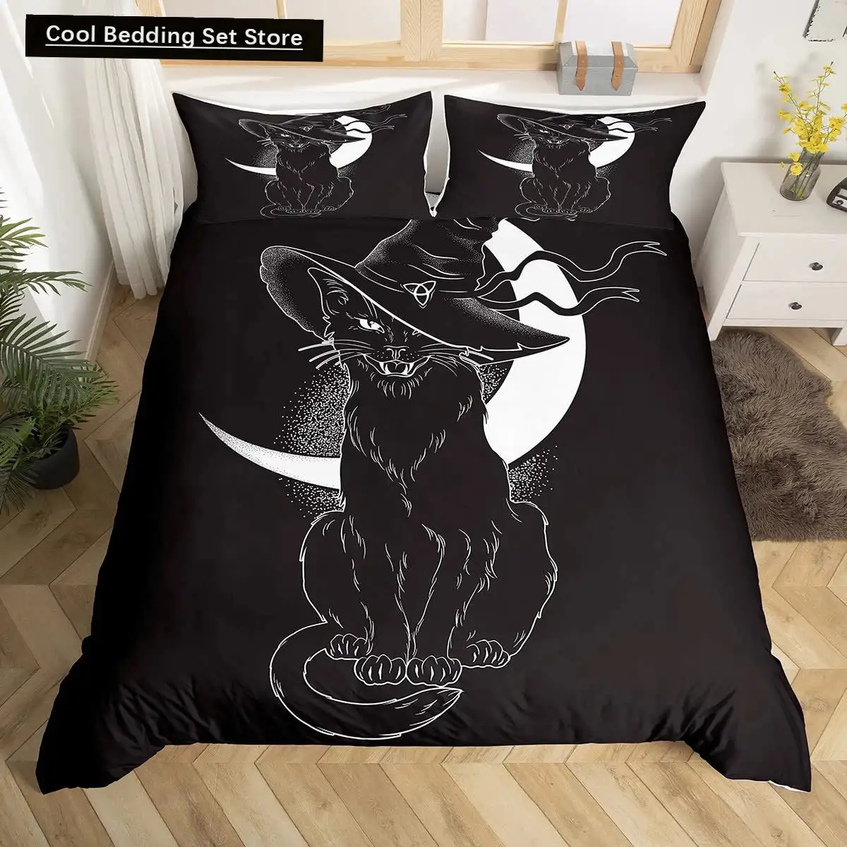 Gothic Halloween Bettwäsche-Set mit schwarzer Katze & Mond