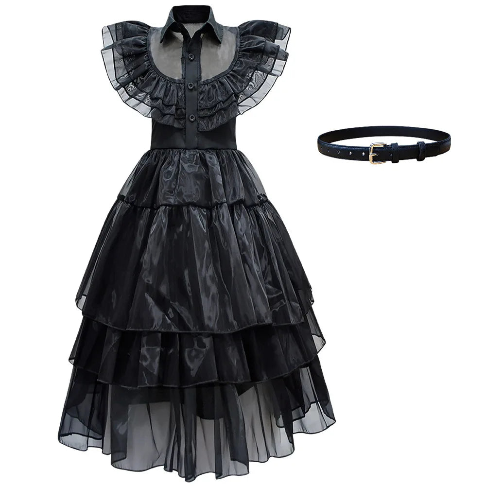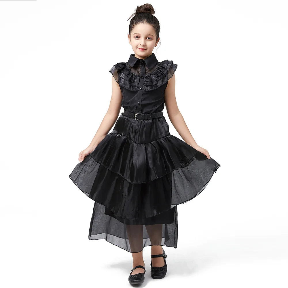 Entdecken Sie unser Gothic Halloween Kostüm für Mädchen – Tüllkleid Merlina, das ideale Outfit für kleine Gothic-Fans, die an Halloween oder beim Karneval glänzen möchten. Dieses aus hochwertigem Polyester gefertigte Kleid kombiniert einen düsteren Charme mit verspielten Elementen aus Tüll und sorgt so für einen authentischen Merlina-Look voller Magie und Geheimnis. Perfekt geeignet für Halloween-Partys, Kostümbälle und Gothic-Events – ein Must-have für jede Nachwuchs-Dunkelprinzessin.