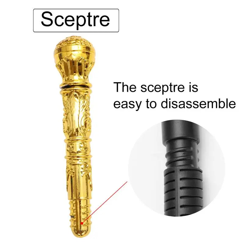 - Elegante Inszenierung: Der Zepter wirkt durch seine runde Form und goldene Farbe besonders majestätisch.