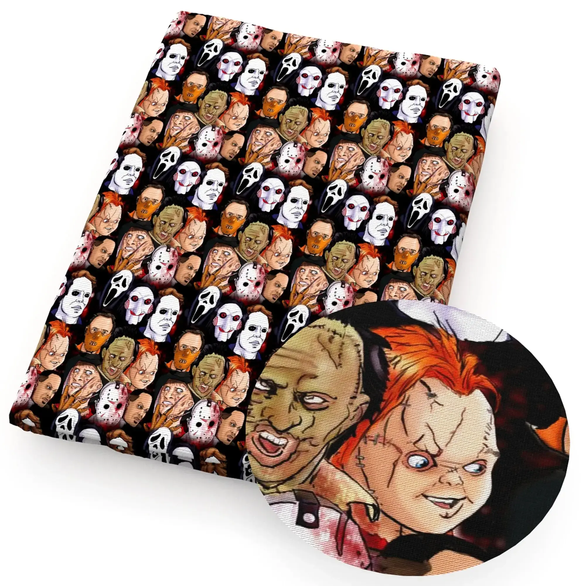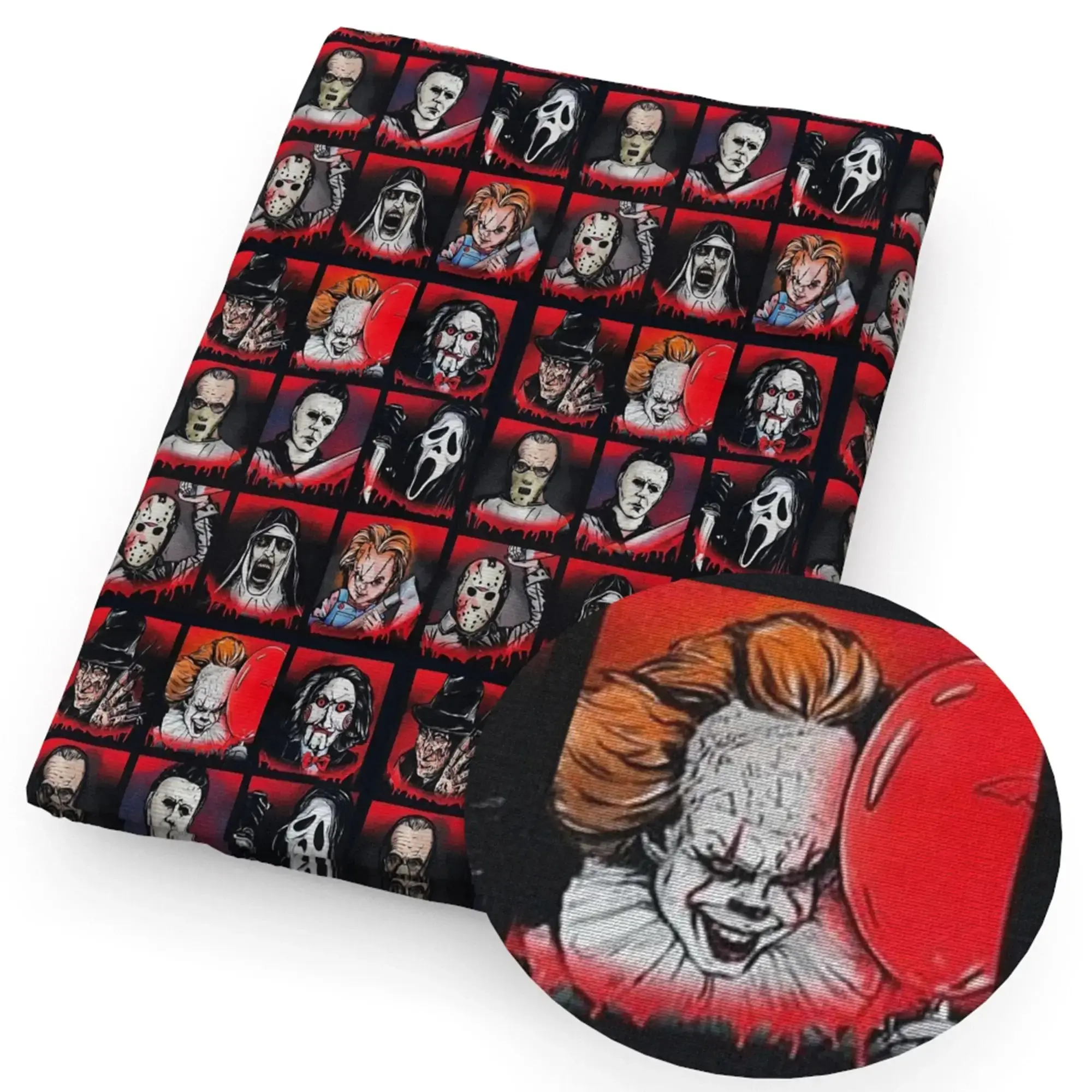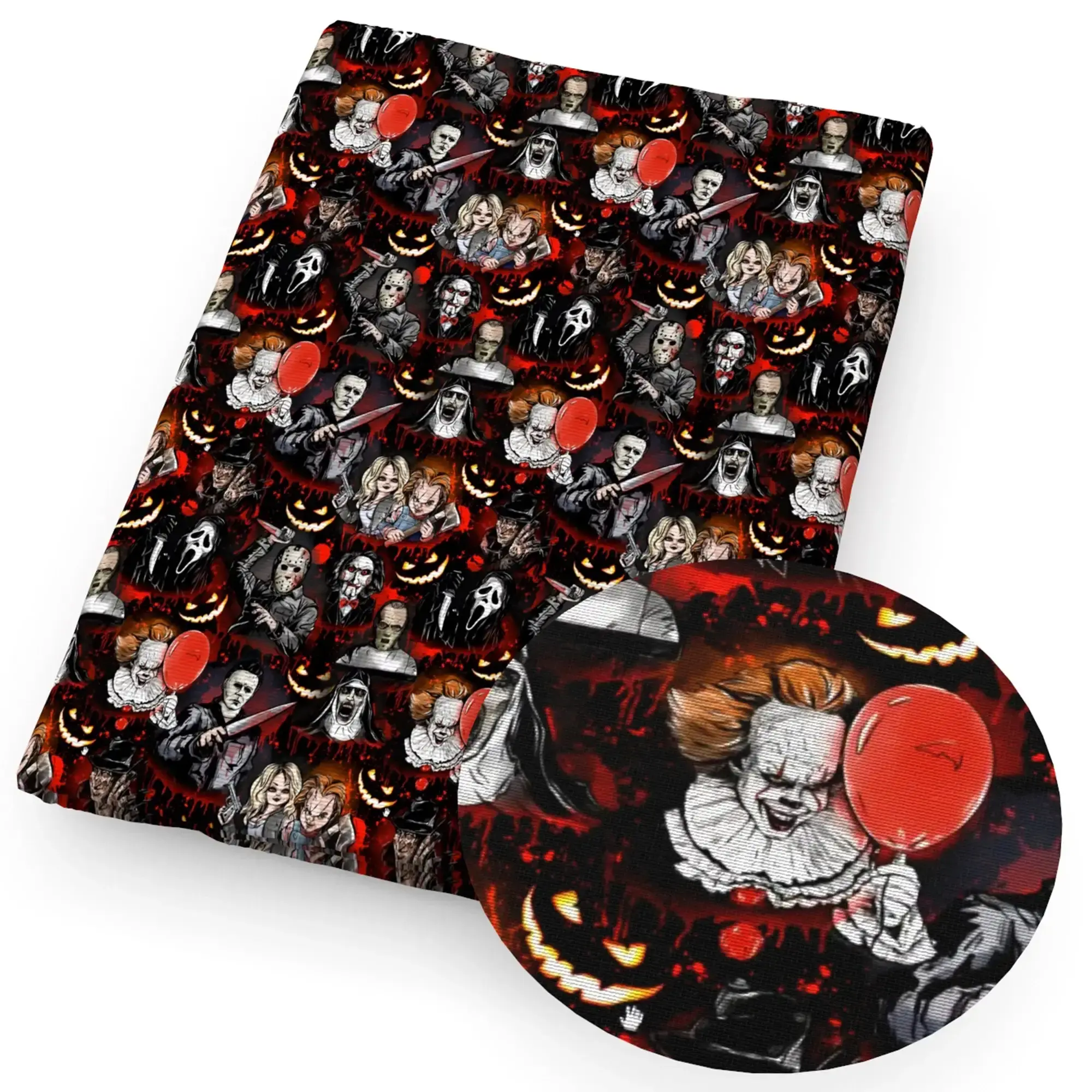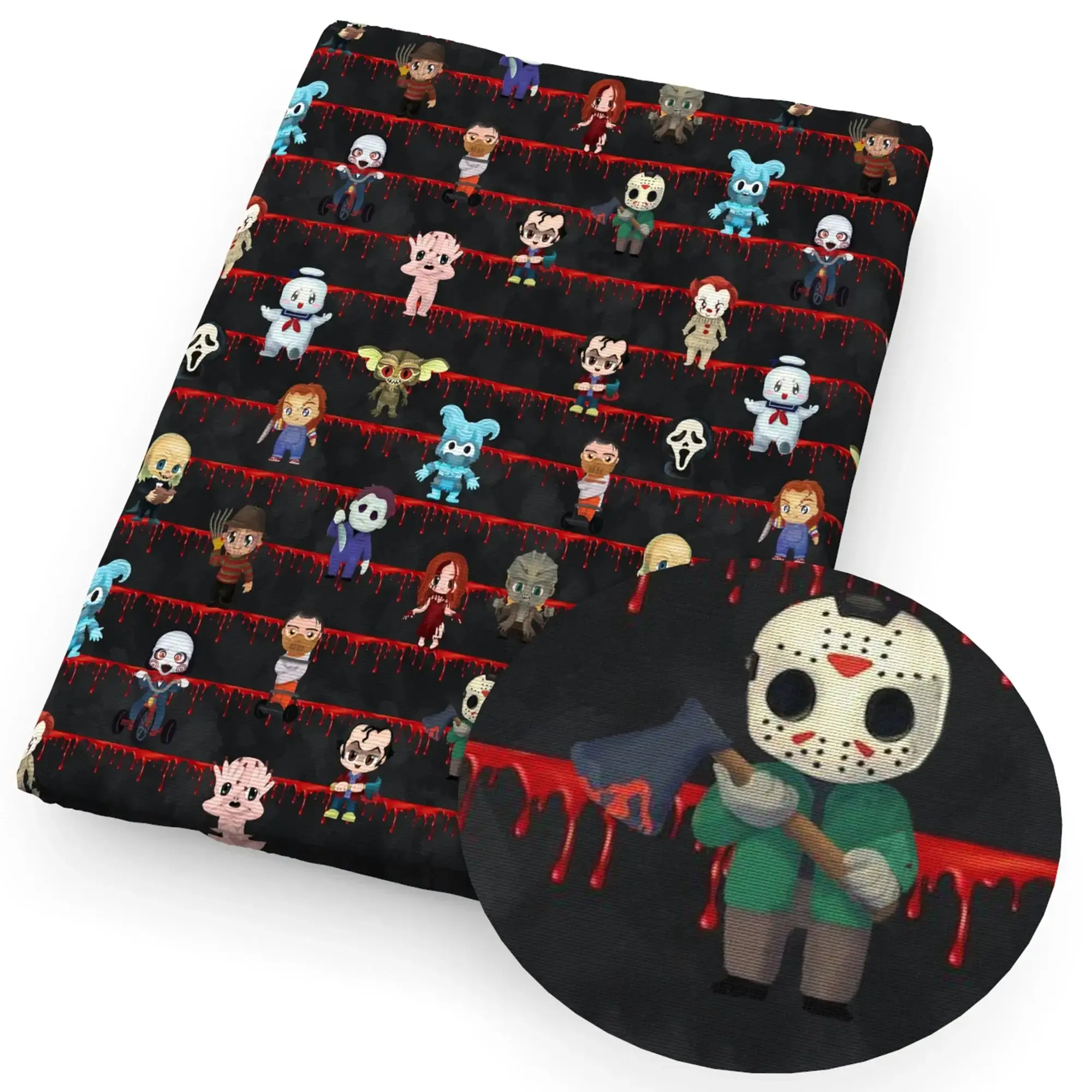 - Unheimliches Design: Bedrucktes Stoffmuster mit typischem Gothic- und Horror-Halloween-Flair.