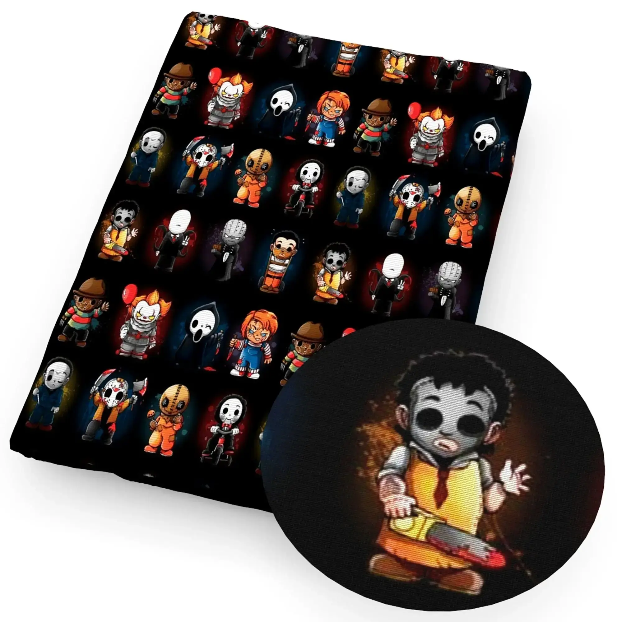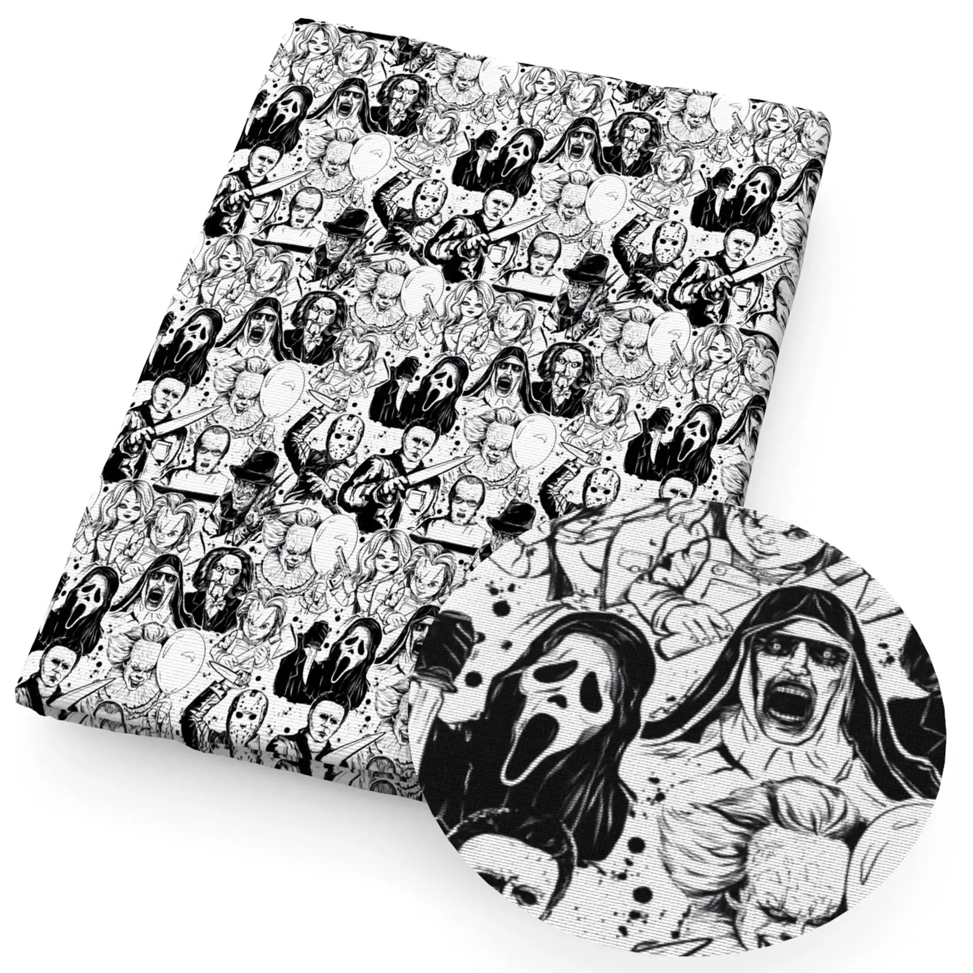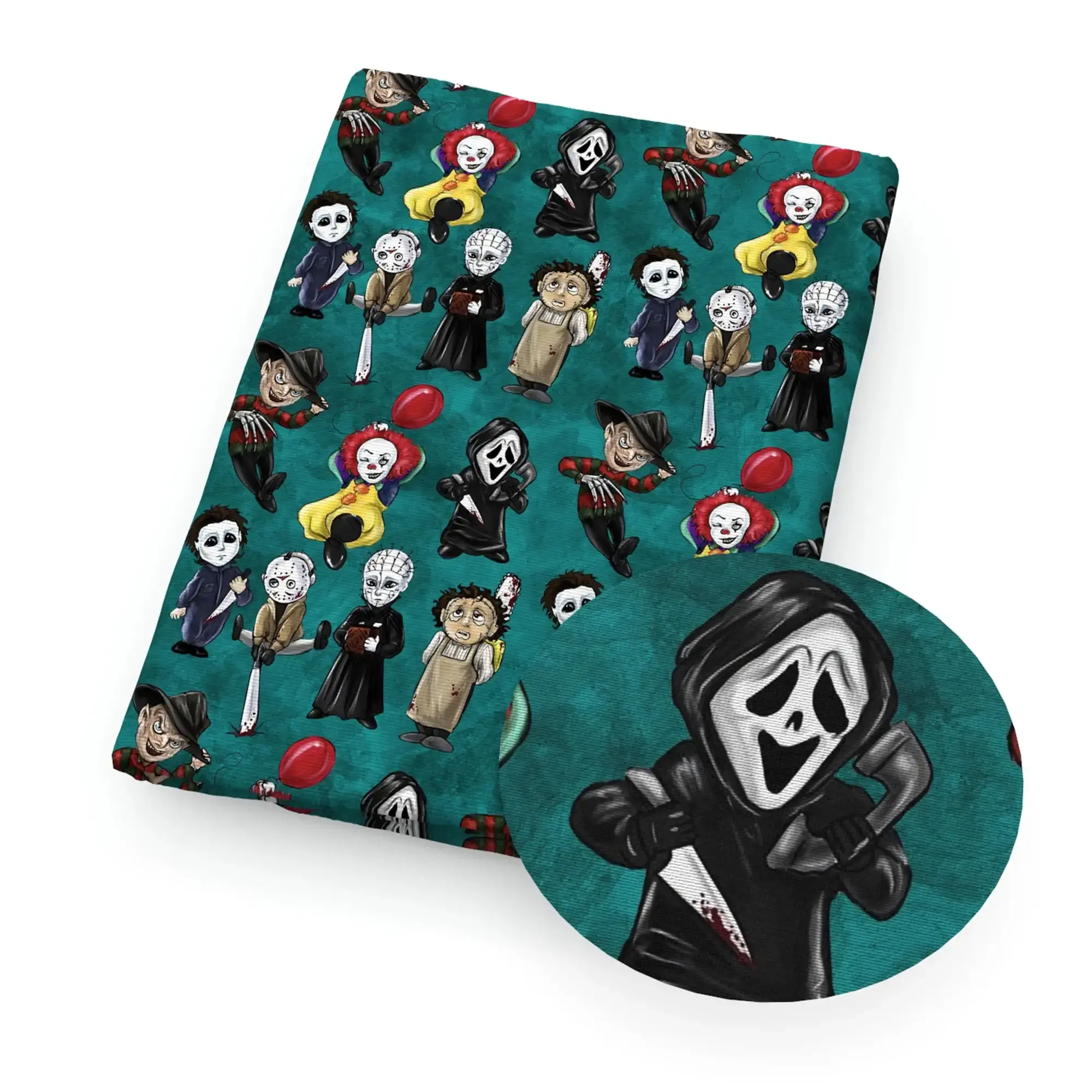 - Unheimliches Design: Bedrucktes Stoffmuster mit typischem Gothic- und Horror-Halloween-Flair.