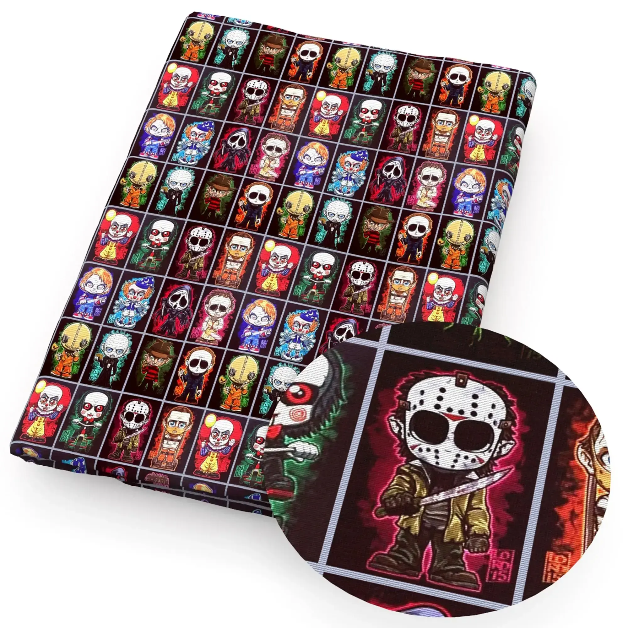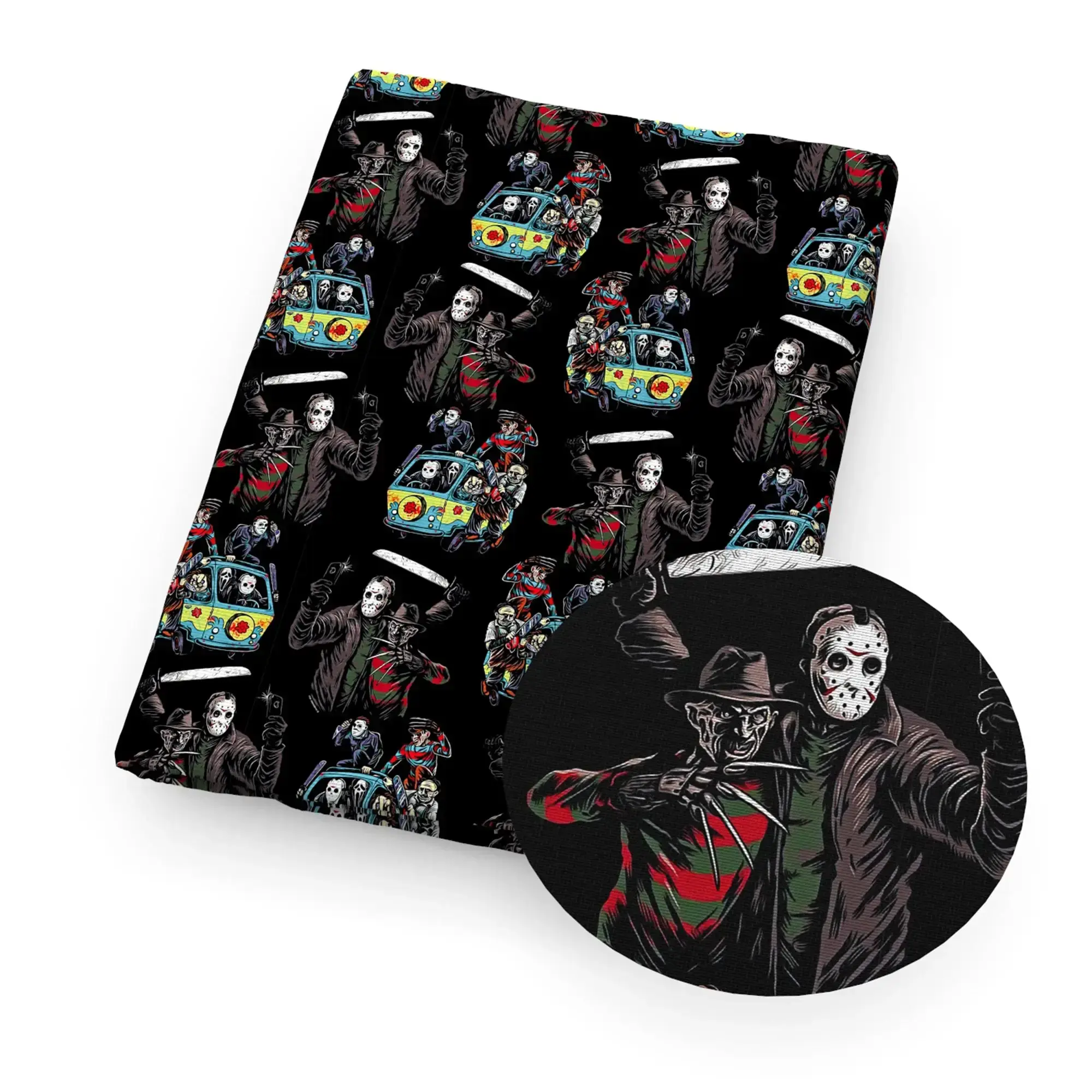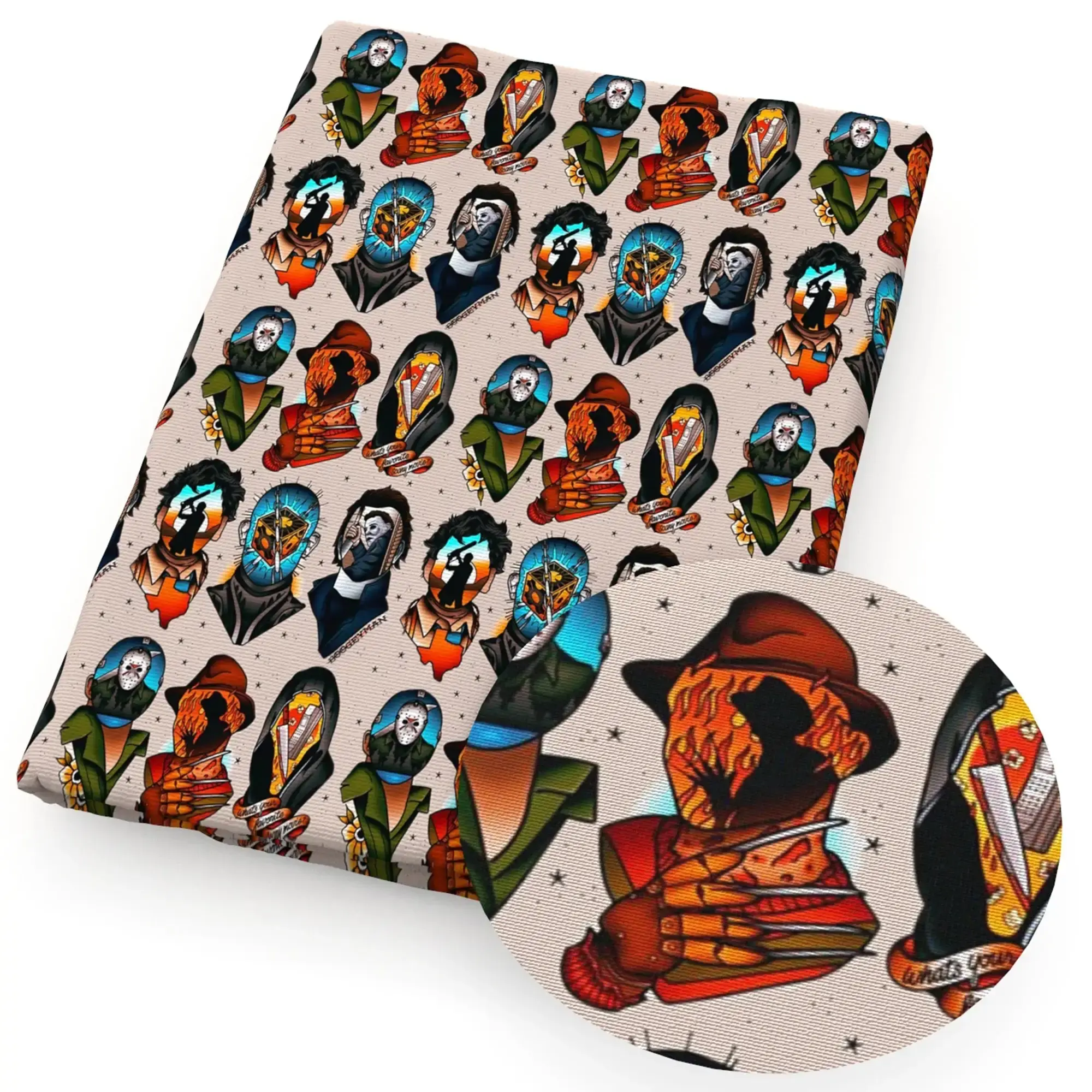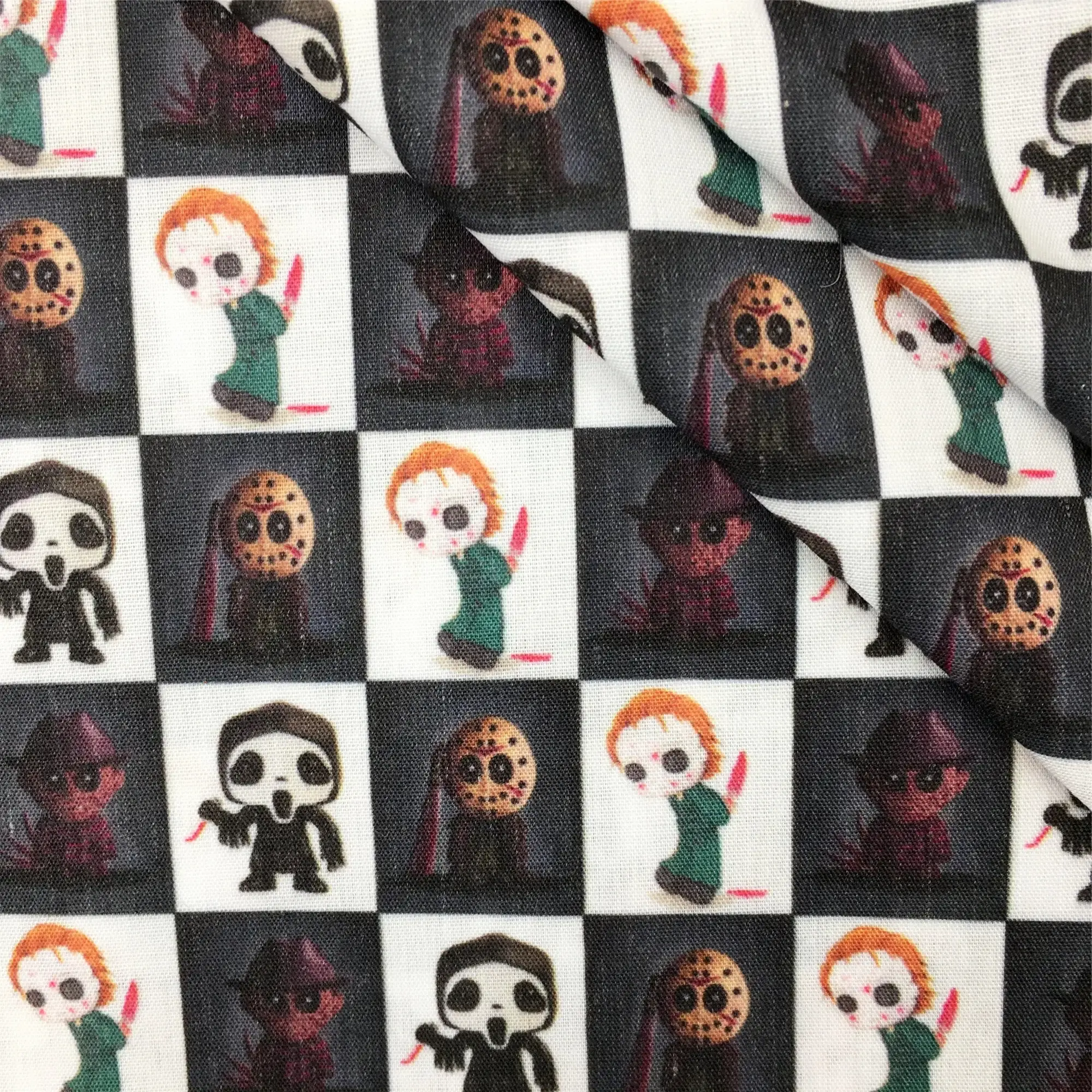 - Unheimliches Design: Bedrucktes Stoffmuster mit typischem Gothic- und Horror-Halloween-Flair.