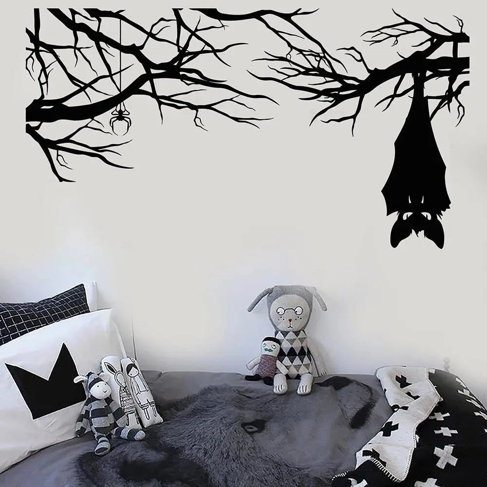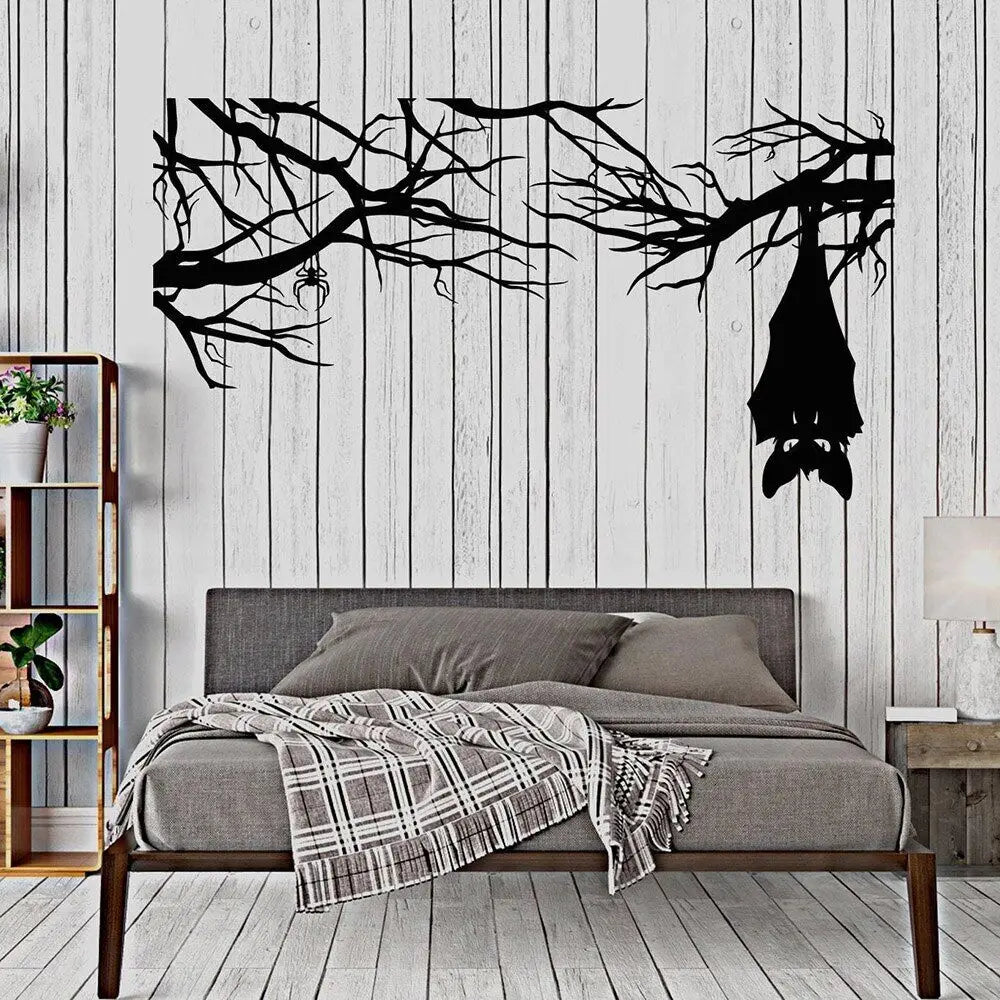 - Design: Fliegende Fledermäuse und Spinne auf Ästen – perfekt für die Wand