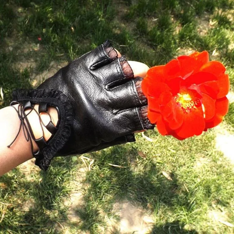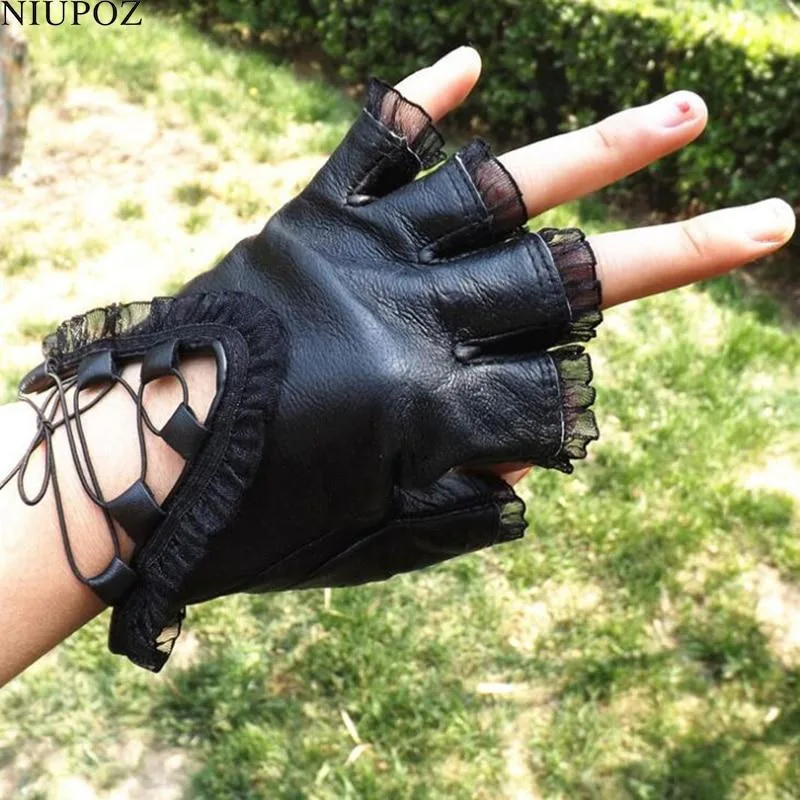 Gothic Handschuh aus Leder und Spitze