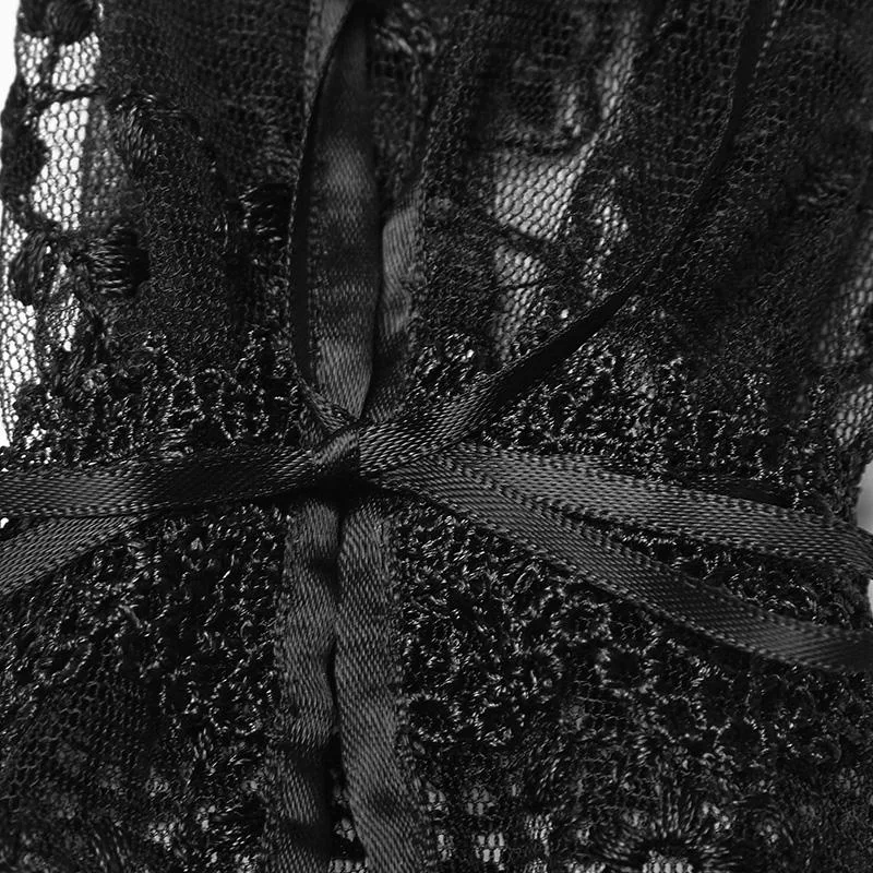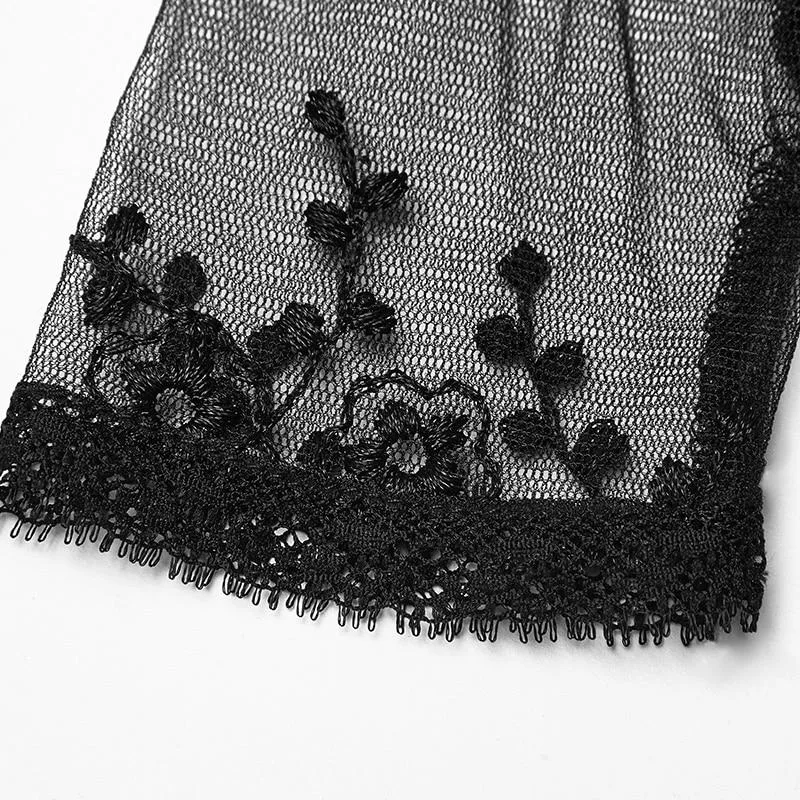 - Elegant und zeitlos: Das schwarze Spitzendesign mit filigranen Blumenstickereien passt perfekt zu jedem gotischen Outfit.