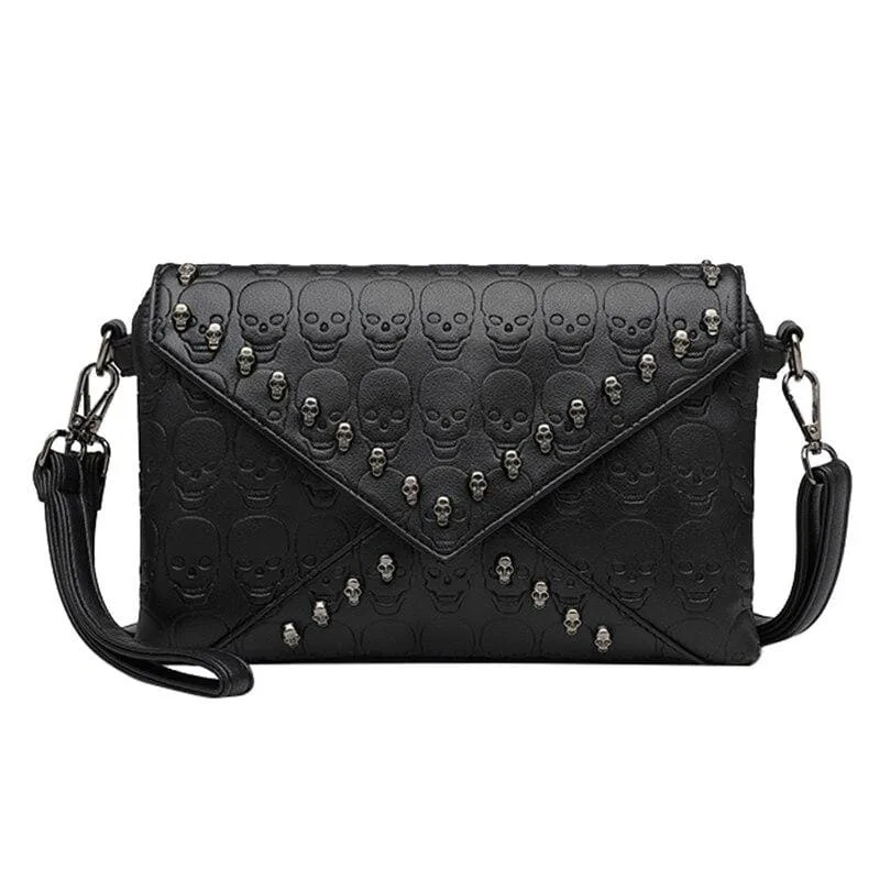 Entdecken Sie unsere Gothic Handtasche mit Schultergurt, das perfekte Accessoire für Liebhaber des Gothic-Stils. Diese stilvolle Hand- und Umhängetasche aus schwarzem Leder und Polyester ergänzt jedes Outfit mühelos. Mit Totenkopfmuster und Nieten verziert, ist die Tasche ein echter Hingucker, egal ob Sie sie im Alltag oder zu speziellen Anlässen tragen. Diese Tasche ist vielseitig und lässt sich sowohl mit ausgefallenen, als auch alltäglichen Looks kombinieren.