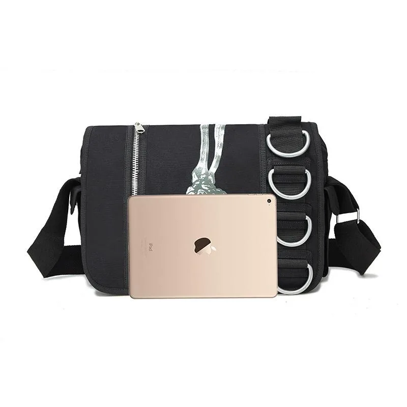 - Einzigartiges Design: Die Tasche vereint ein kunstvolles Skelett-Motiv mit einem unisex-tauglichen Stil – ein echter Hingucker.
