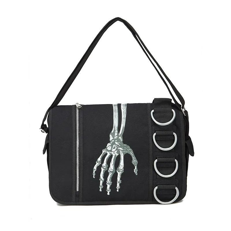 Entdecken Sie unsere Gothic Handtasche Skelett, das perfekte Accessoire für alle Liebhaber des düsteren und einzigartigen Gothic-Stils. Mit ihrem auffälligen Skelett-Design und dem modernen, gut durchdachten Erscheinungsbild sticht diese Tasche sofort ins Auge. Egal, ob für den Alltag oder besondere Anlässe – diese Umhängetasche ist ein absolutes Must-Have für jede Gothic-Garderobe.