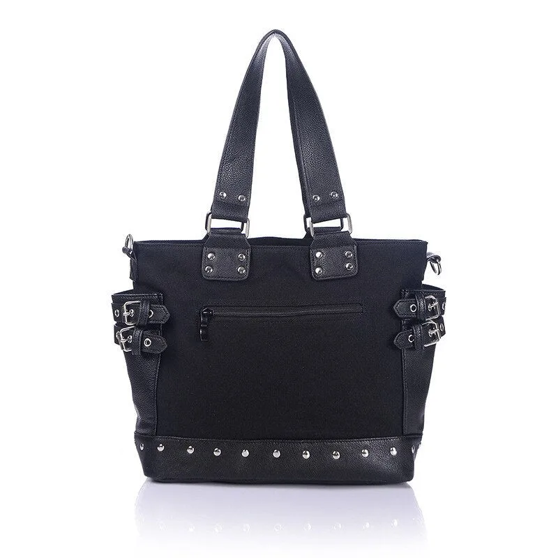 Sichern Sie sich Ihre Gothic Handtasche Vintage vernietet und verleihen Sie Ihrem Look einen unverwechselbaren Touch. Diese Tasche ist ideal für Ihre alltäglichen Abenteuer und besondere Anlässe. Lassen Sie sich dieses Highlight nicht entgehen!