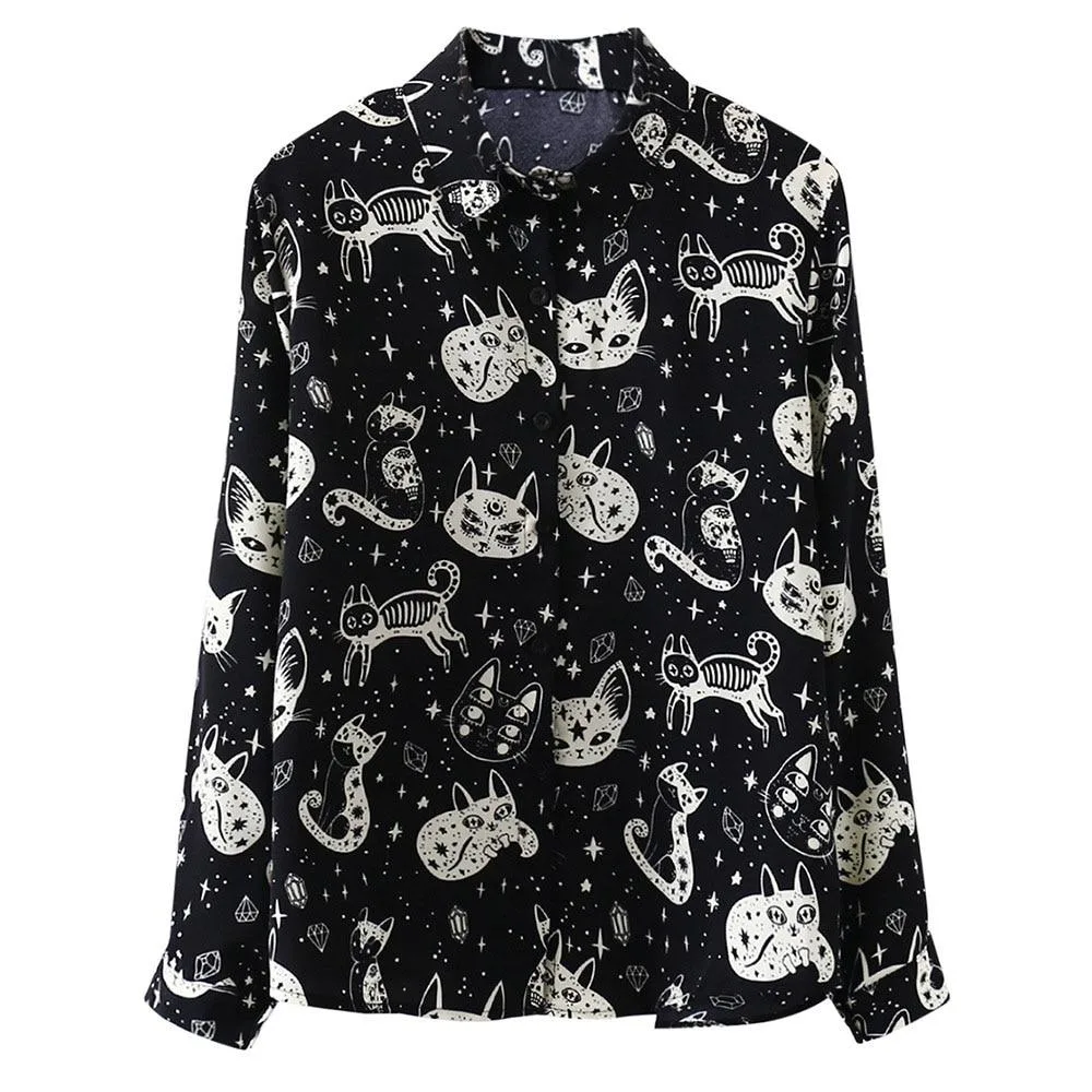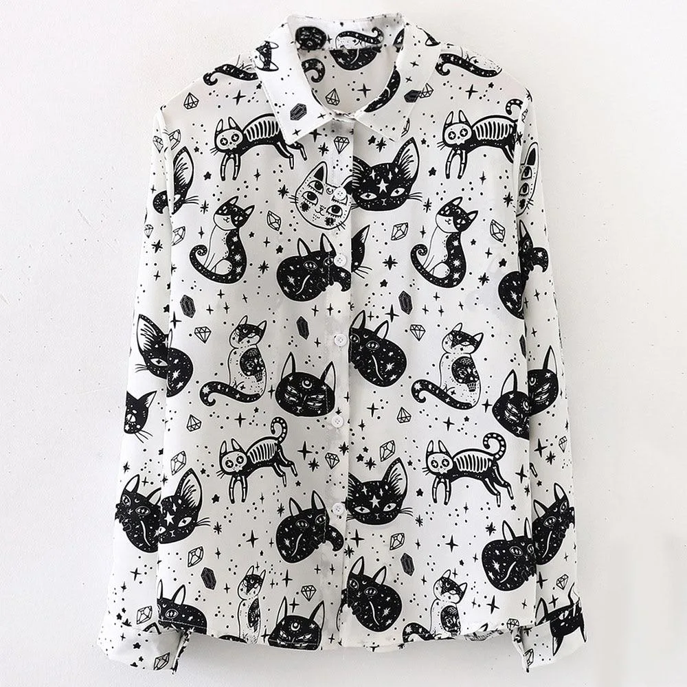 Gönnen Sie sich dieses zeitlose Gothic Hemd Katze und verleihen Sie Ihrer Garderobe das gewisse Etwas. Ideal für jede Jahreszeit und ein Must-have für alle, die den Gothic-Look mit unvergesslichen Details lieben!