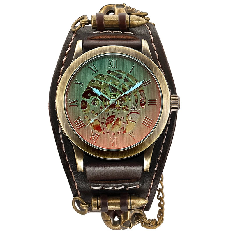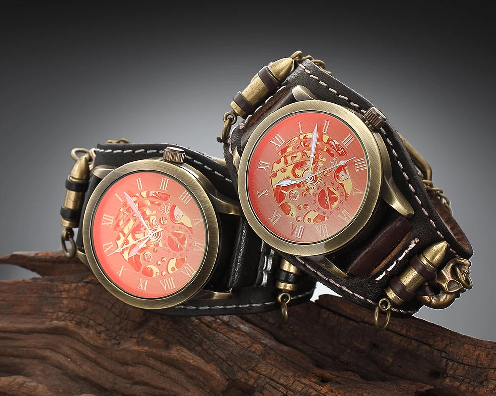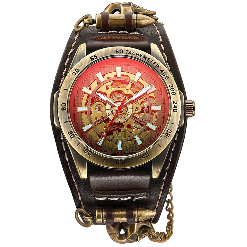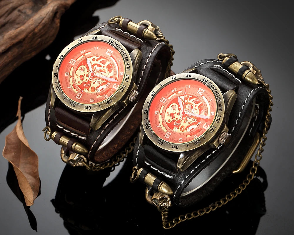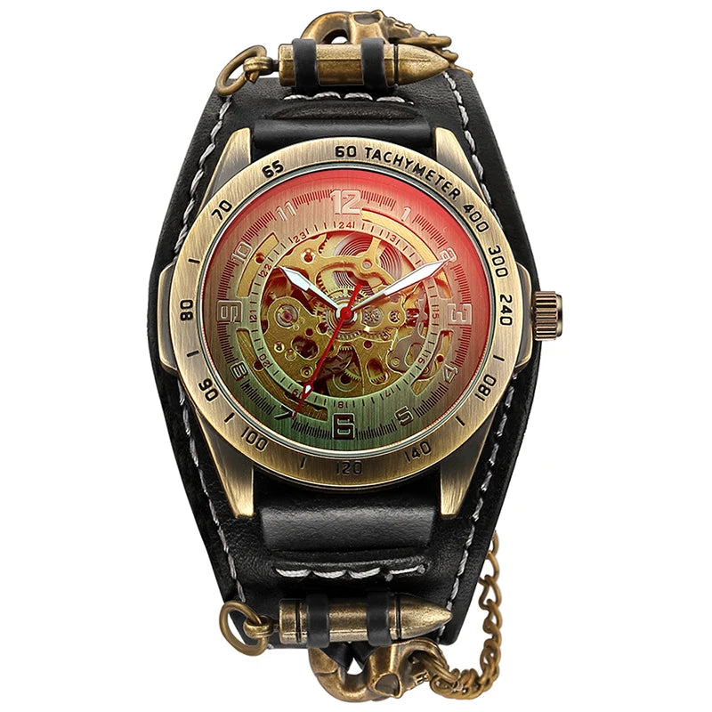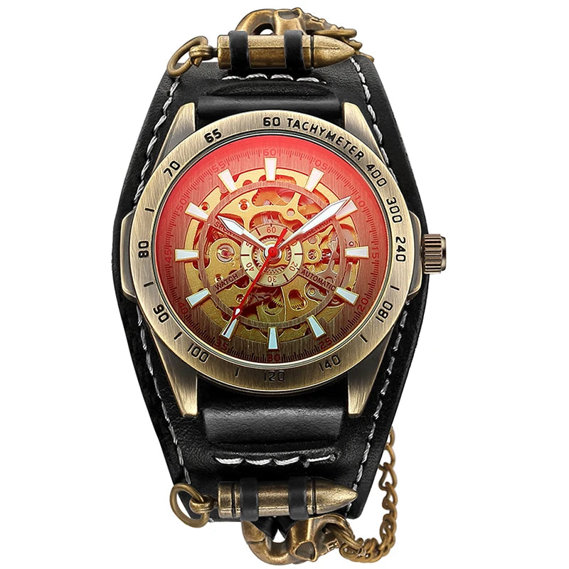 Gothic Herren Automatikuhr im Vintage Steampunk-Stil