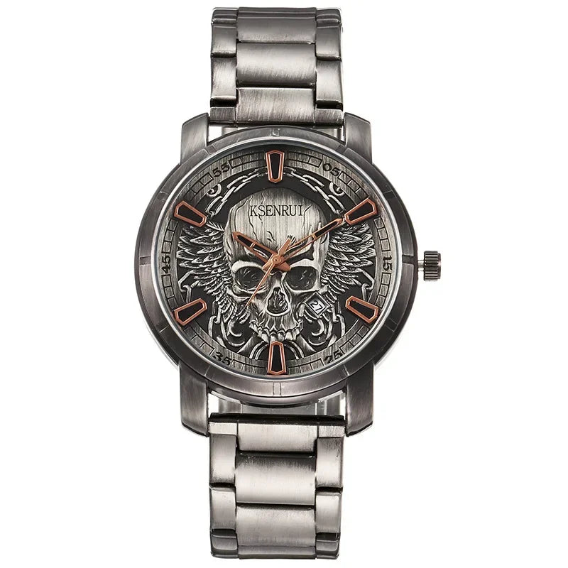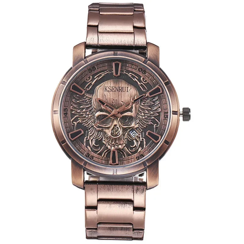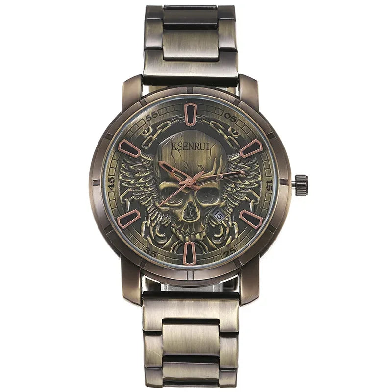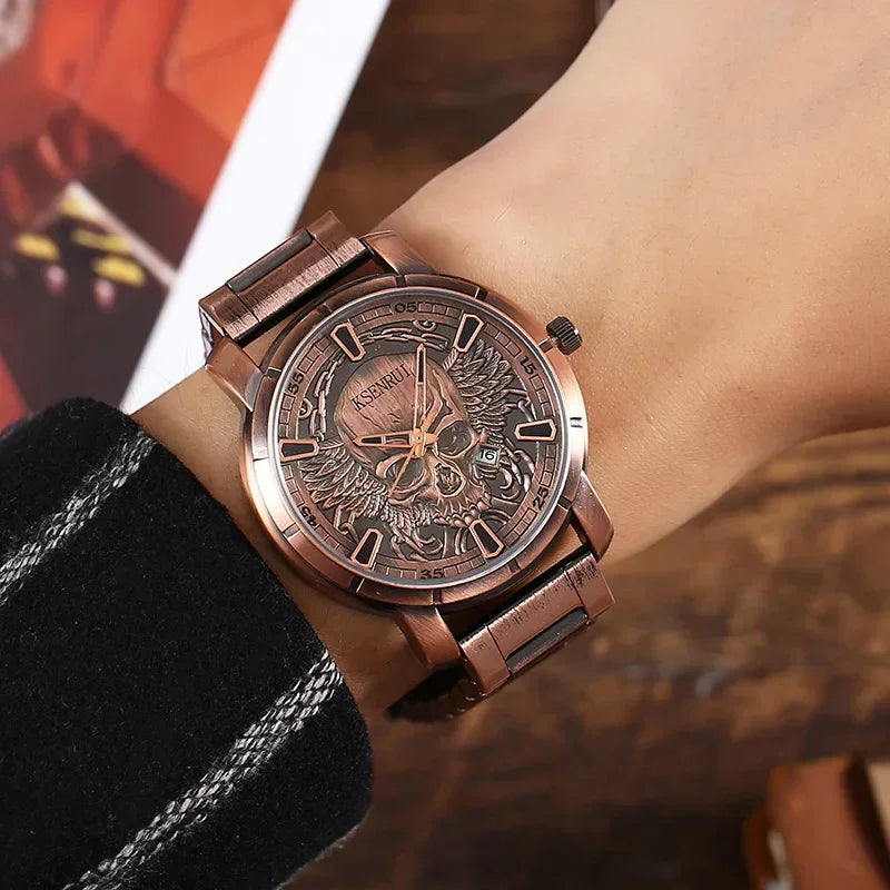 Gothic Herren Uhr Bronze Edelstahl Retro Totenkopf Design