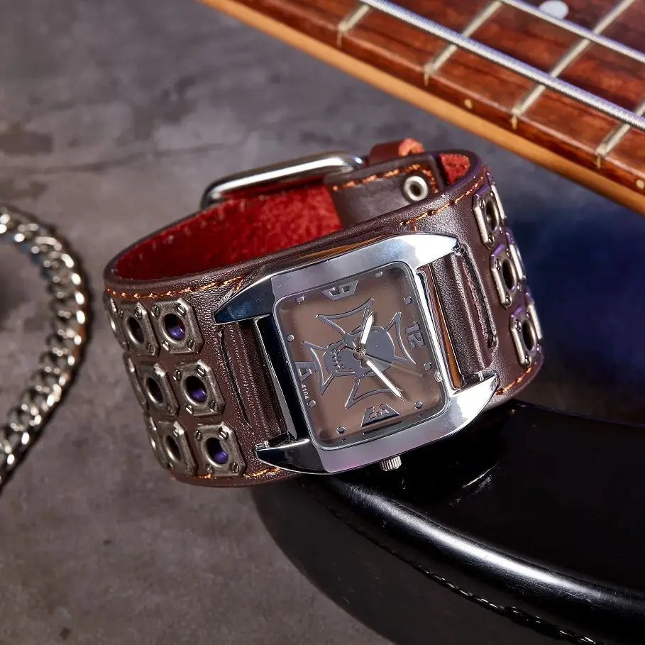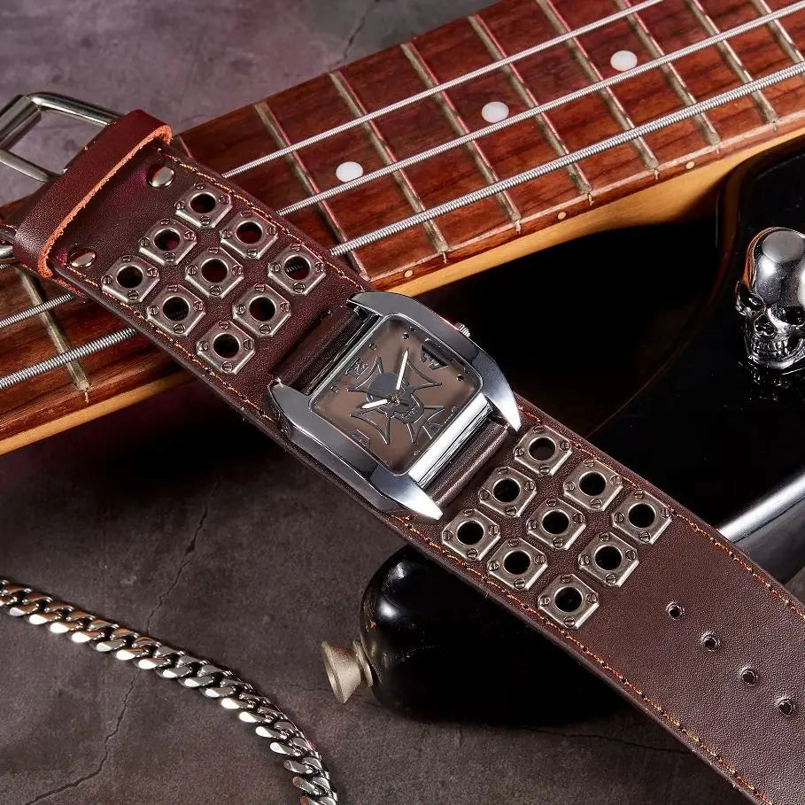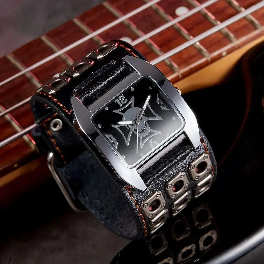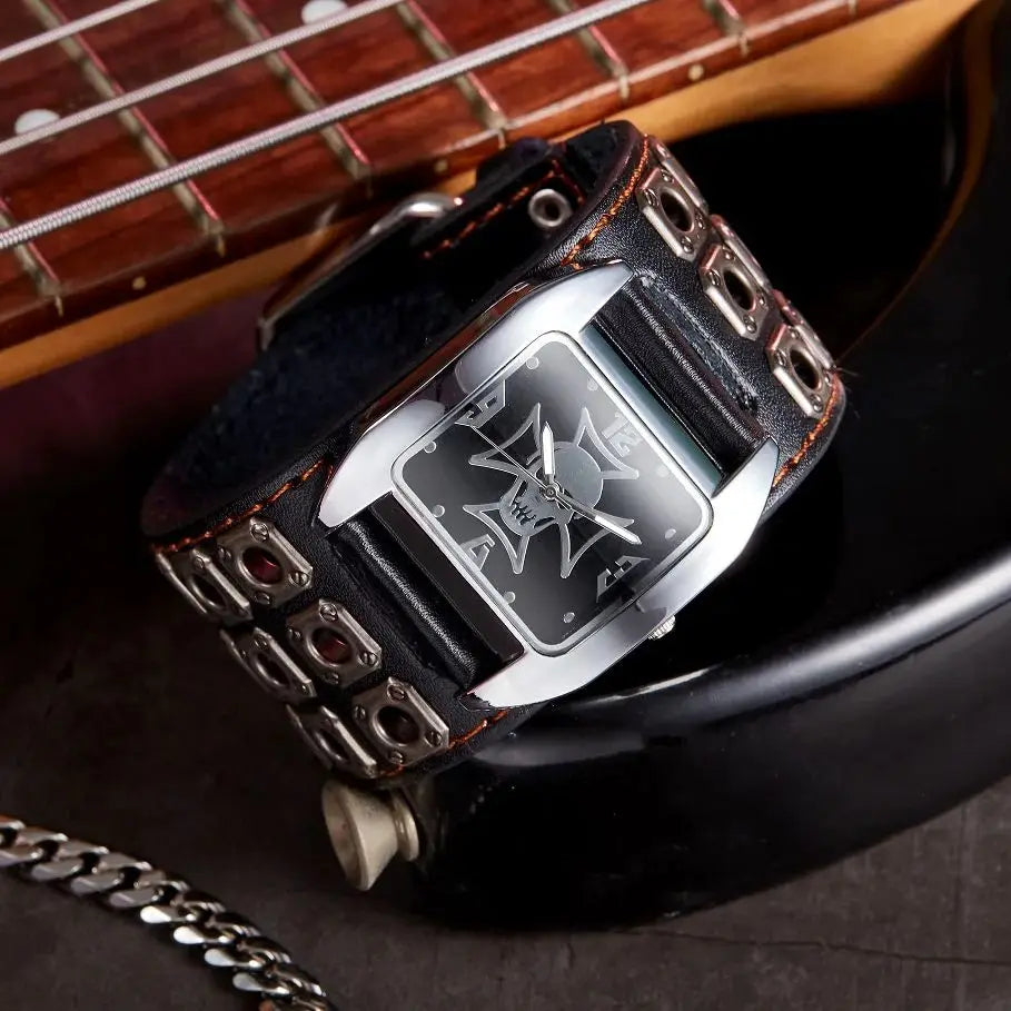 - Design: Punk-Stil, Totenkopf-Motiv, quadratisches Zifferblatt