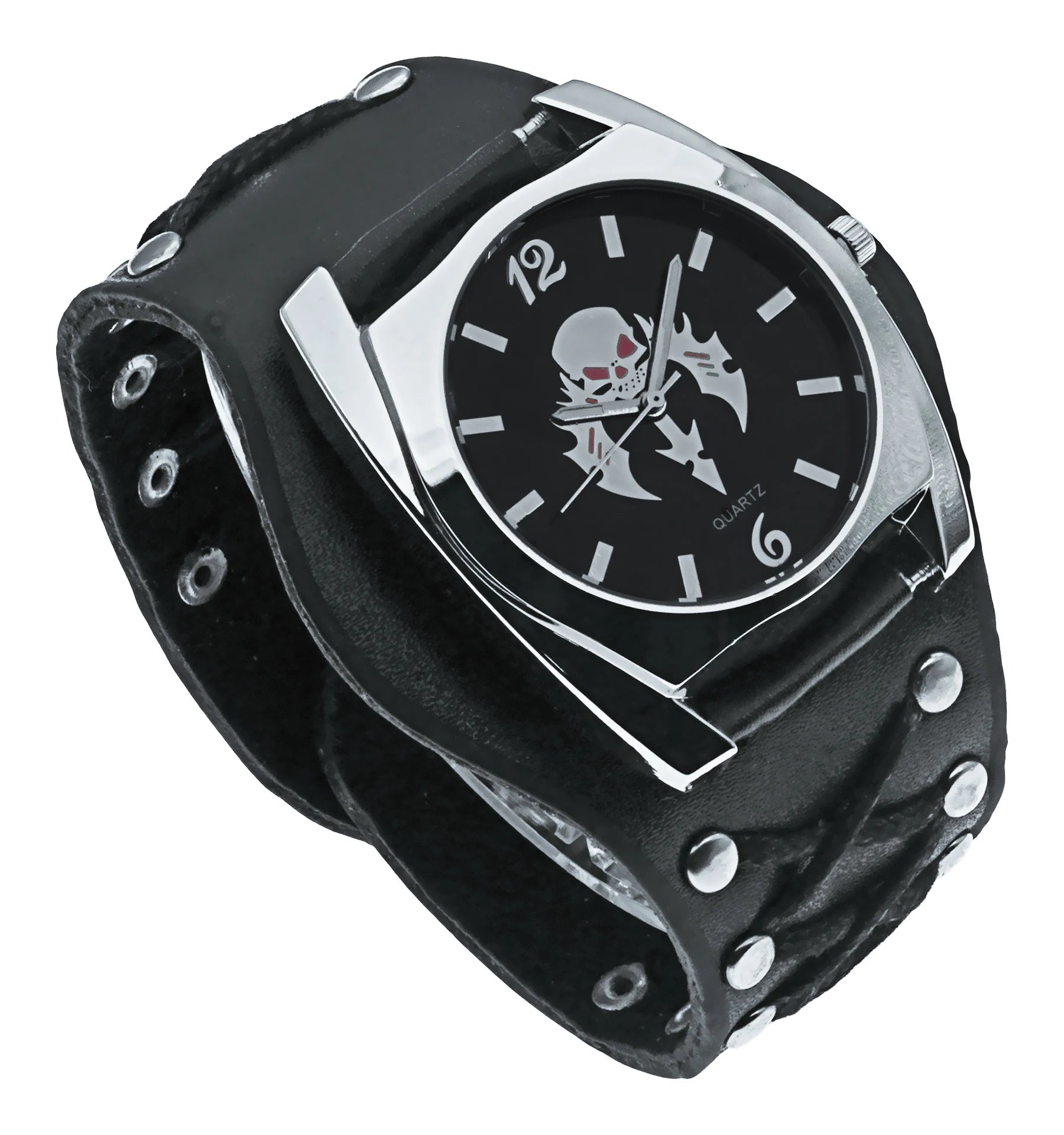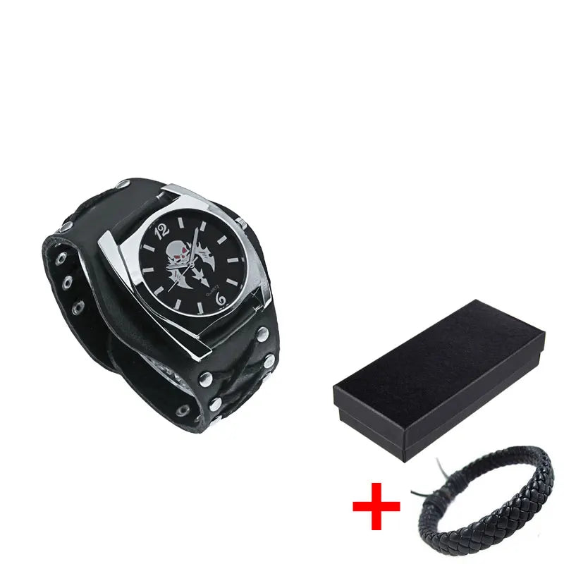 - Markantes Design: Das auffällige Totenkopf-Motiv verleiht der Uhr eine rebellische und düstere Ausstrahlung – ideal für Gothic- und Heavy-Metal-Fans.